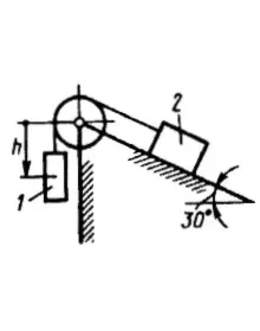 Тело 1 массой m1 = 4 кг опускается на расстояние h = 1м, поднимая скользящее по