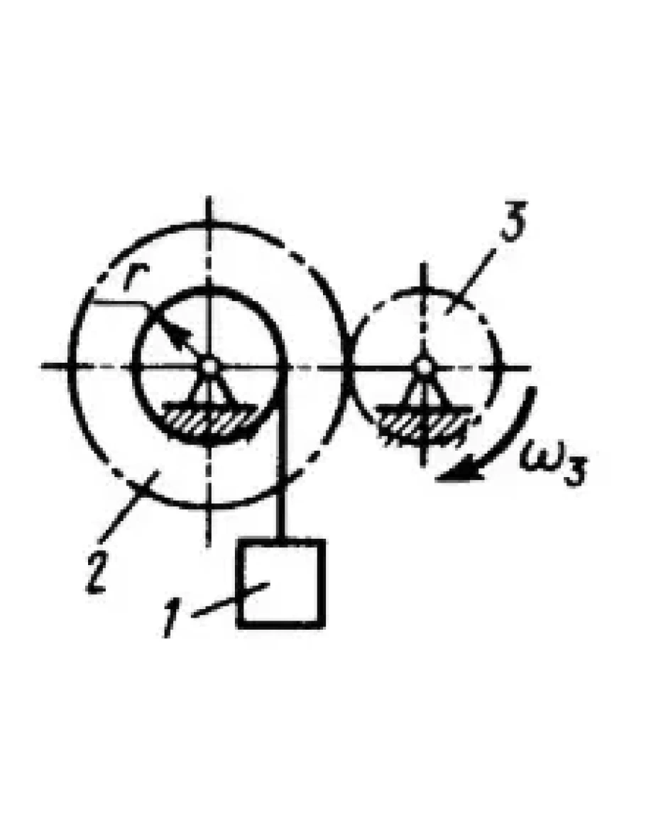 Для подъема груза 1 массой m1 = 200 кг используется лебедка. Зубчатое колесо 3,