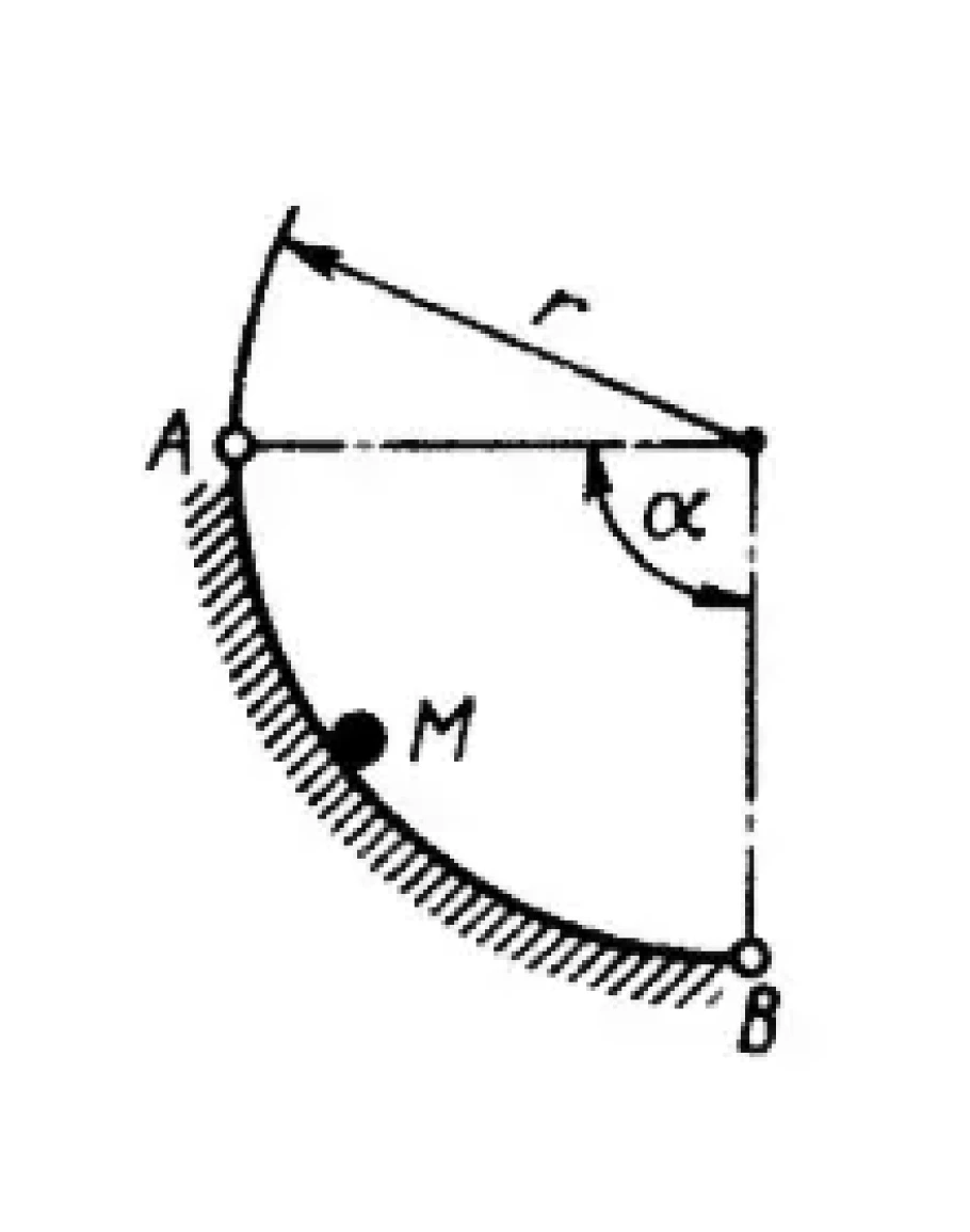 радиуса r = 1 м с центральным углом а = 90°. Определить работу, совершенную силой тяжести