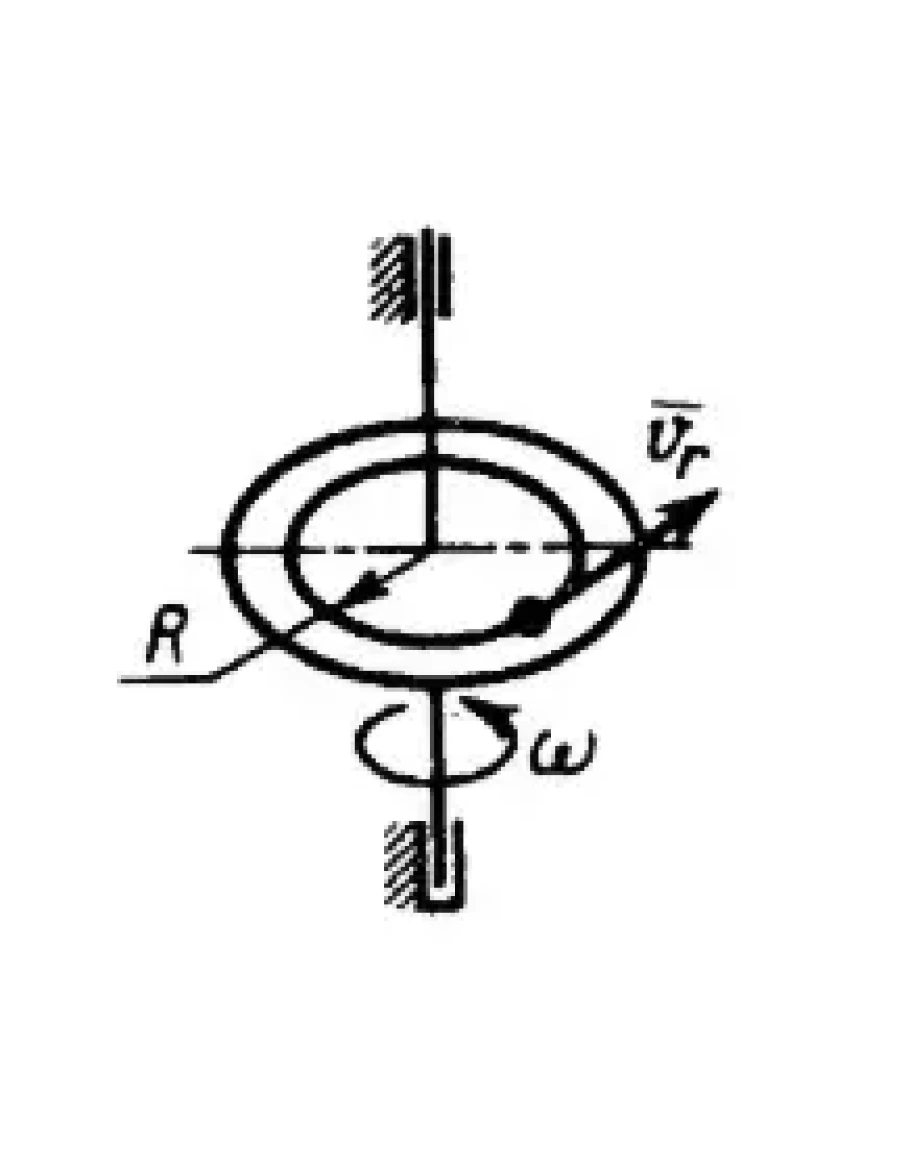 По горизонтальной платформе на неизменном расстоянии R = 1 м от оси вращения с относительной скоростью vr = 3 м/с перемещается материальная точка массой m = 0,2 кг. Найти ее кинетическую энергию, если платформа вращается с угловой скоростью ? = 2 рад/с. (Ответ 2,5)