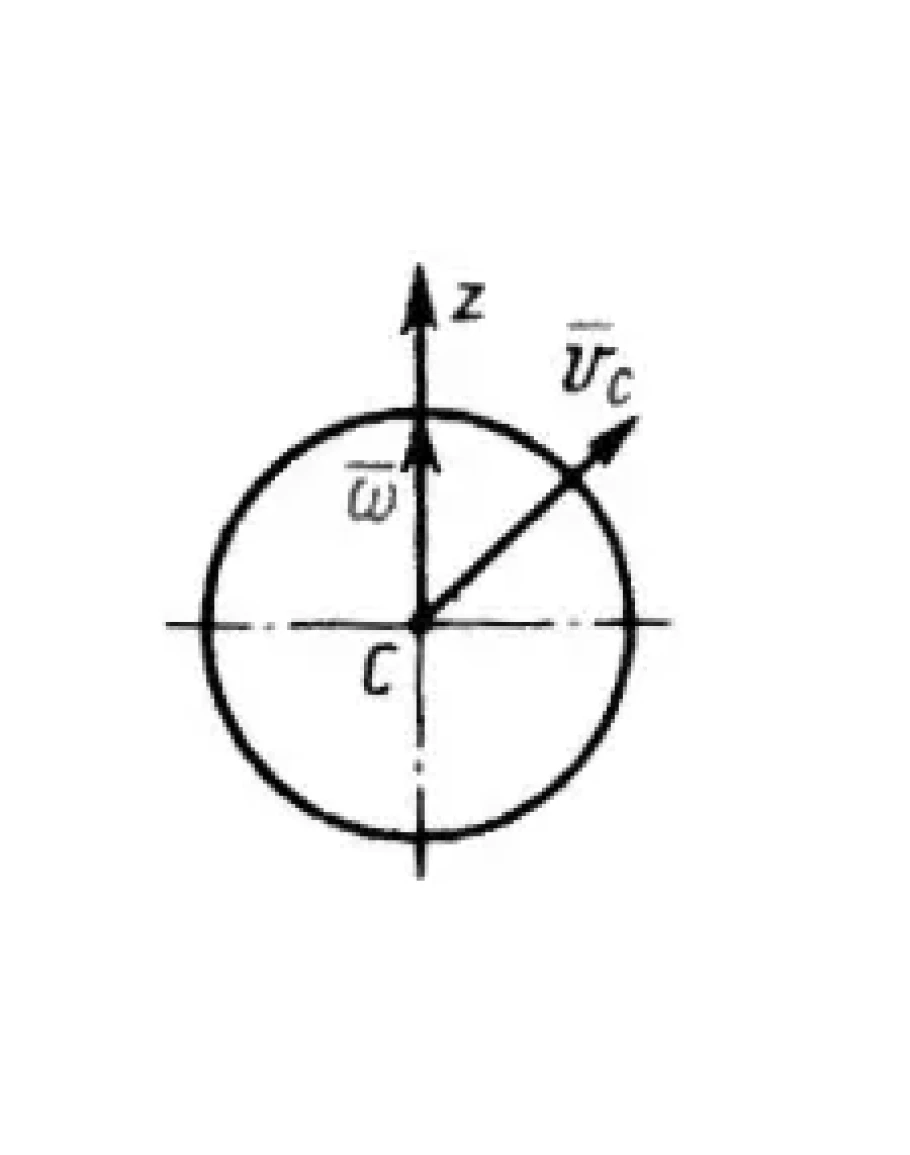 Шар массой m = 5 кг свободно движется в пространстве: скорость vc центра С шара равна 4 м/с, а его угловая скорость ? вращения вокруг мгновенной оси Сz равна 10 рад/с. Определить кинетическую энергию шара, если его момент инерции относительно оси Сz равен 0,5 кг • м2. (Ответ 65)