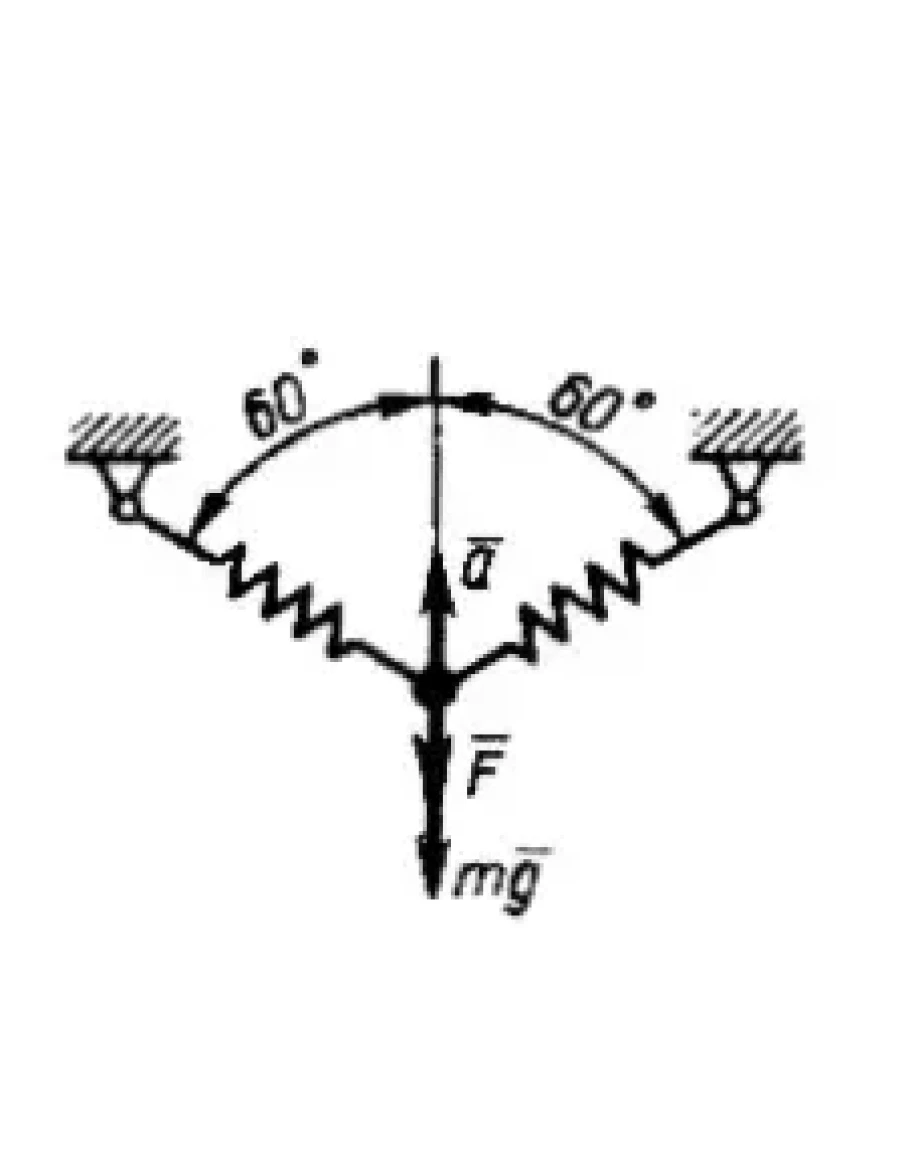 Материальная точка массой m = 12 кг подвешена на двух одинаковых пружинах. На