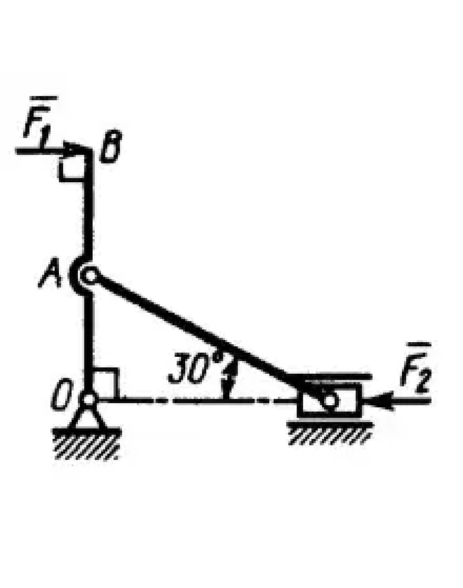 бы механизм находился в равновесии, если сила F1 = 100Н и длина ОА = АВ. (Ответ 200)