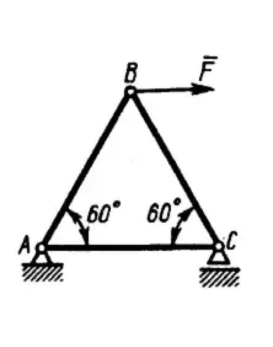 Определить усилие в стержне АС плоской фермы, если к узлу В приложена