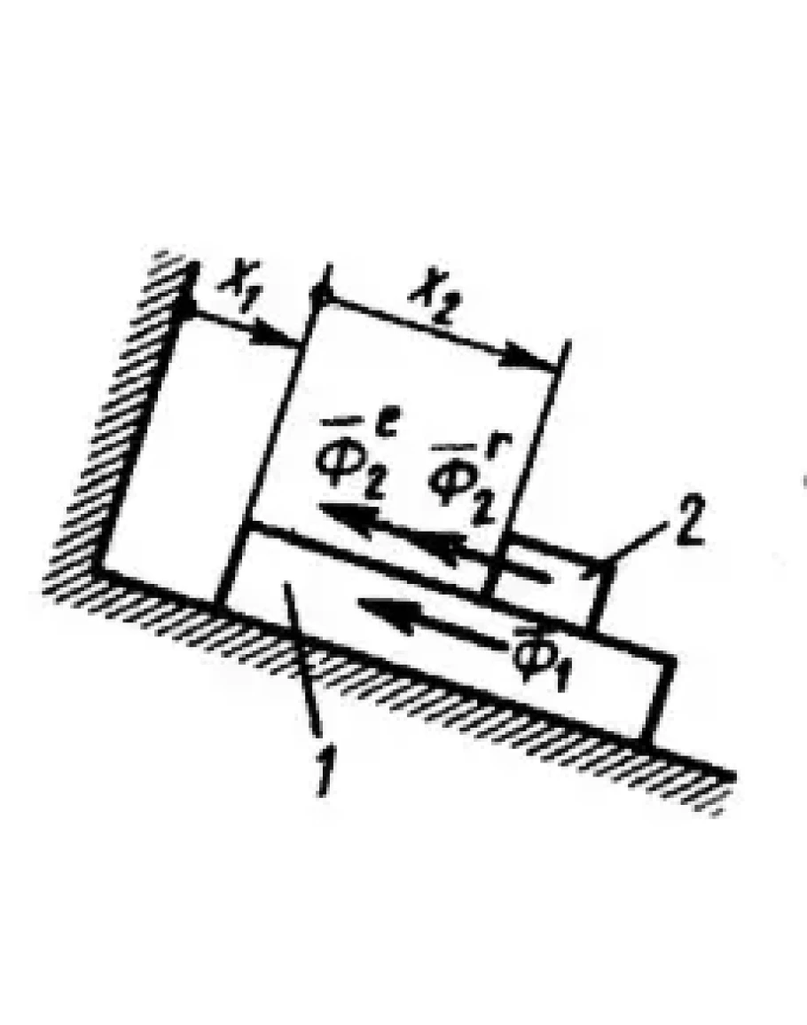 Определить обобщенную силу инерции, соответствующую обобщенной координате х2, если сила инерции тела 1 Ф1 = 8Н, переносная и относительная силы инерции тела 2 соответственно Ф2e = 5Н, Ф2r = 5Н. (Ответ -10)