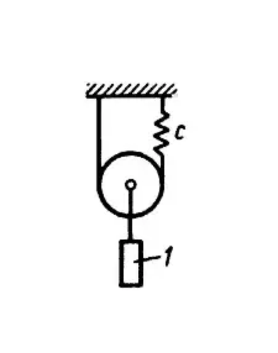 Определить угловую частоту свободных вертикальных колебаний тела 1, если его масса m = 1 кг, коэффициент жесткости пружины с = 100 H/м. (Ответ 20)