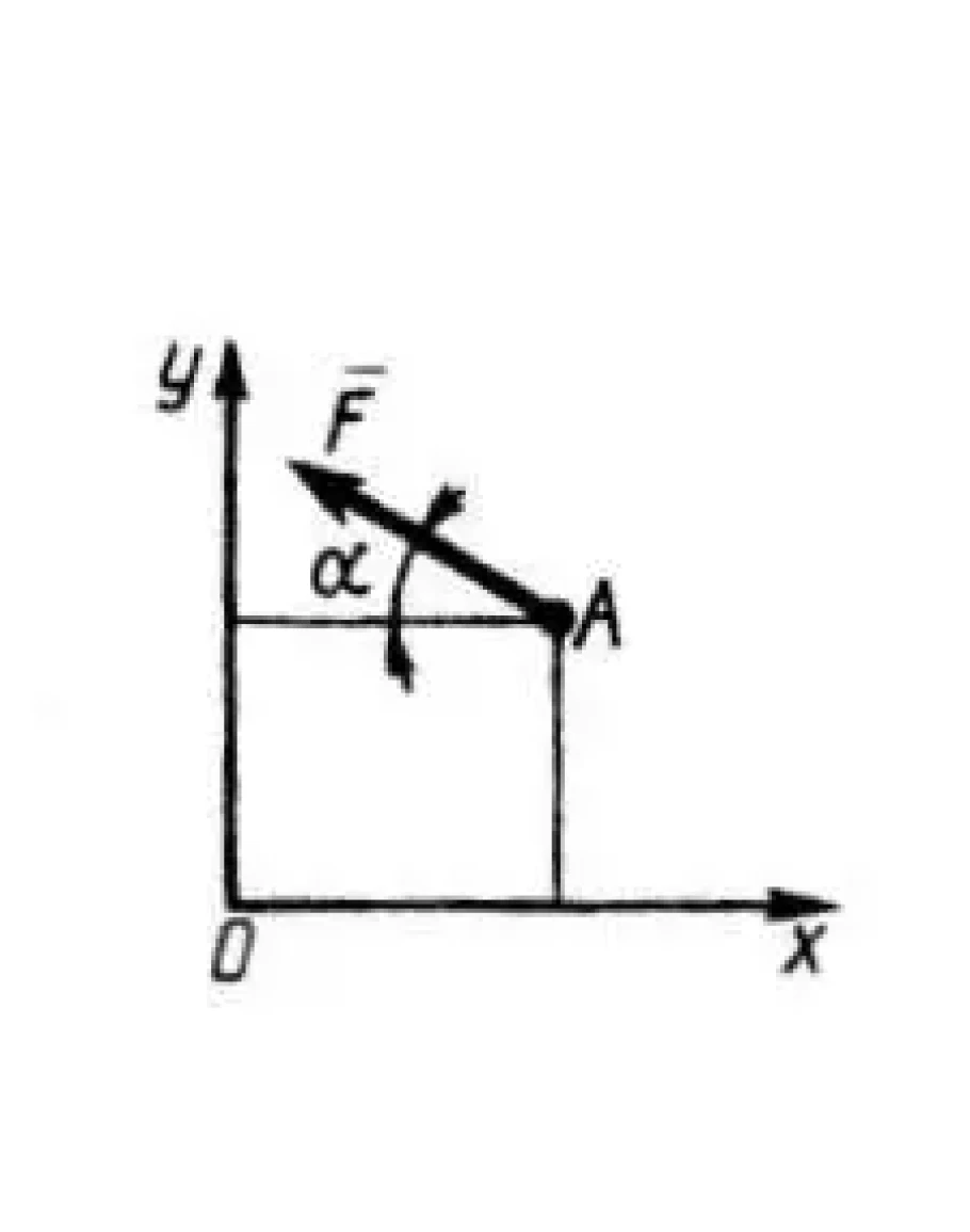 Определить момент силы относительно точки О, если координаты хА = 0,2 м, уА = 0,3 м и угол ?=30 .