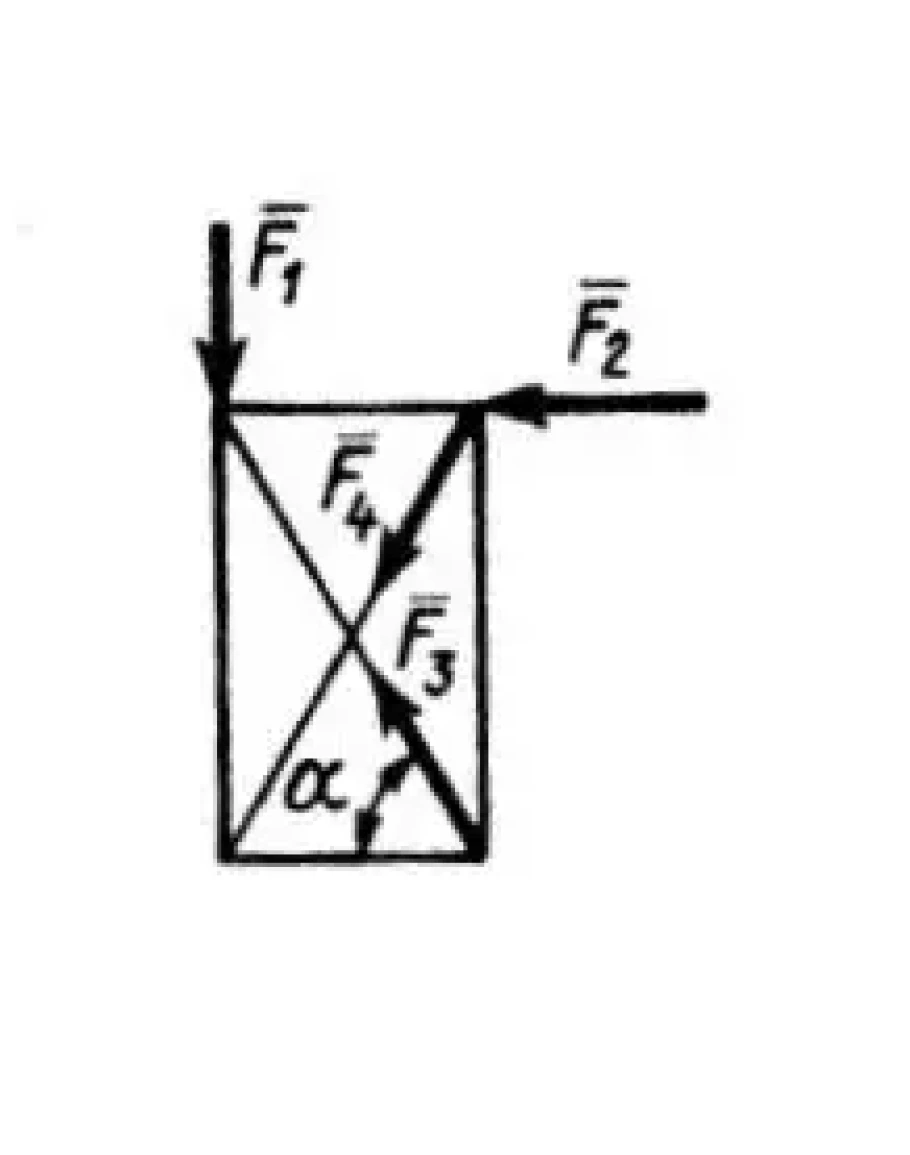 К прямоугольнику приложены четыре силы по 10Н каждая. Определить модуль главного вектора заданной системы сил, если угол ?=60°. (Ответ 22,4)