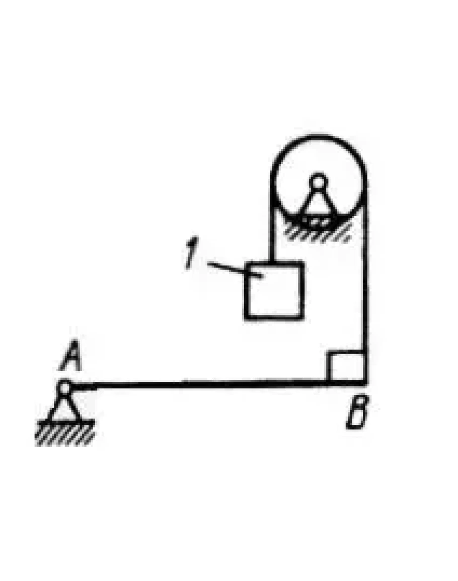 Определить вес груза 1, необходимый для того, чтобы однородная балка AВвесом 340Н в положении равновесия была горизонтальна. (Ответ 170)