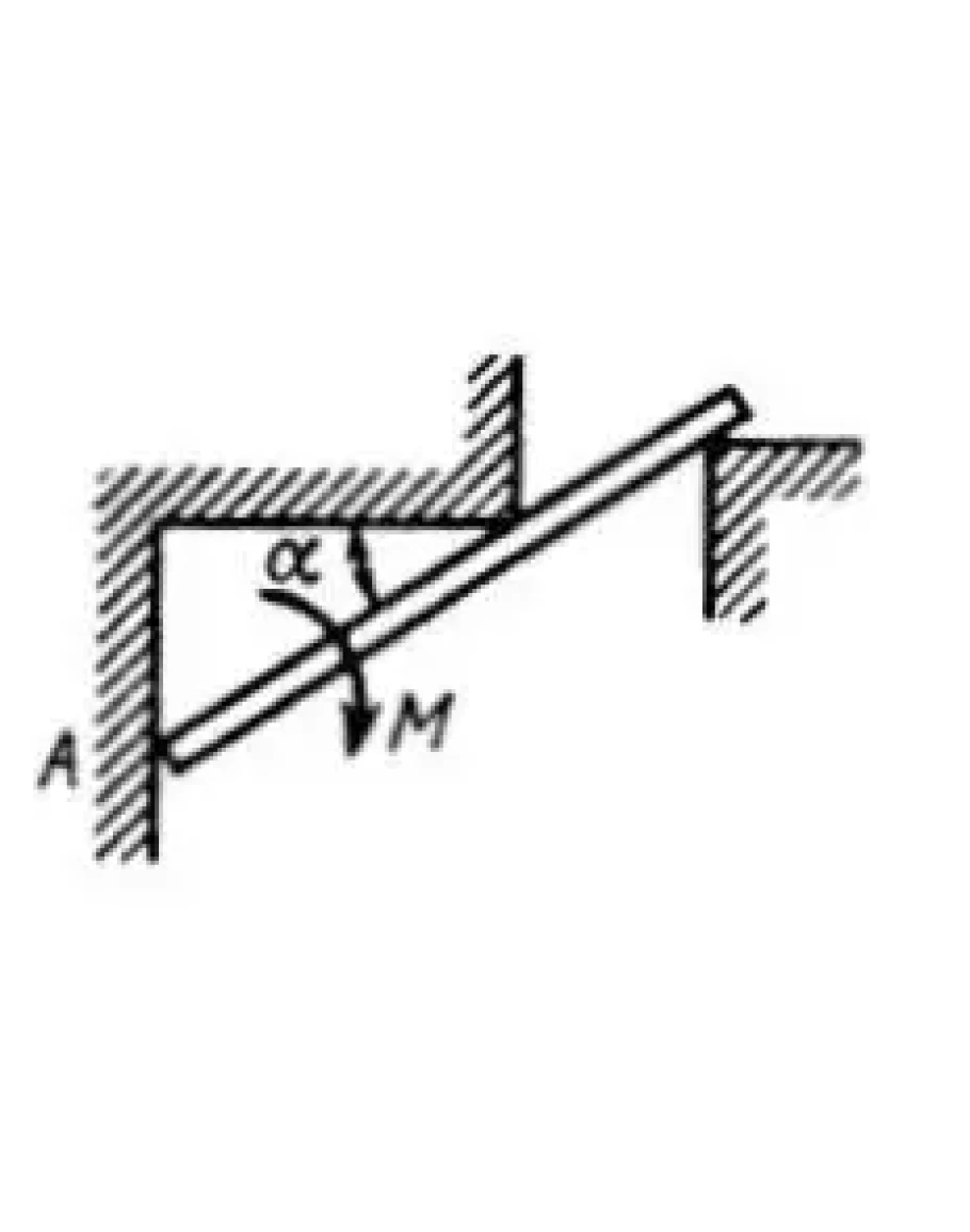 Стержень удерживается под углом ?=30° к горизонту. Определить реакцию опоры А, если момент пары сил М = 25 кН·м. (Ответ 0)