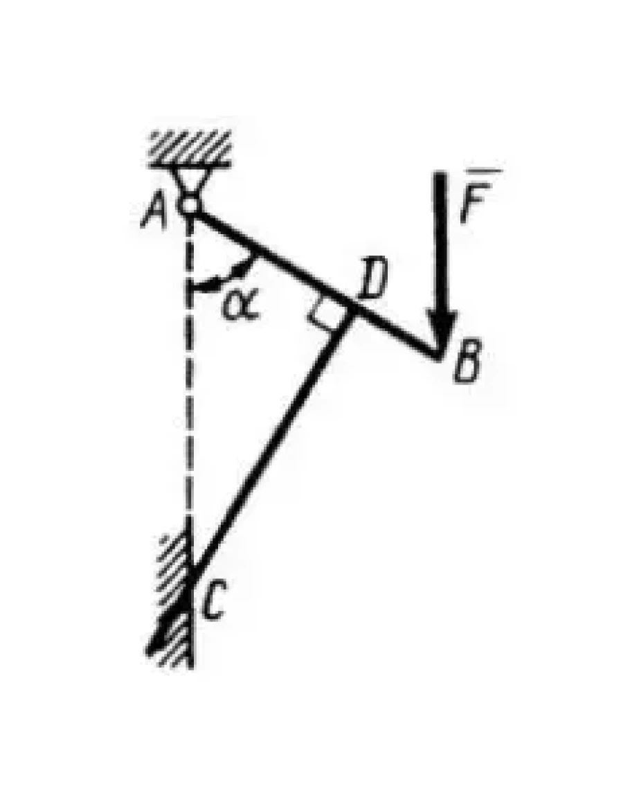 Балка АВ опирается на стержень CD. Определить реакцию стержня CD, если длины АВ = 2 м, BD = 1/3 АВ, сила F = 4 Н, угол ?=60°. (Ответ 5,20)