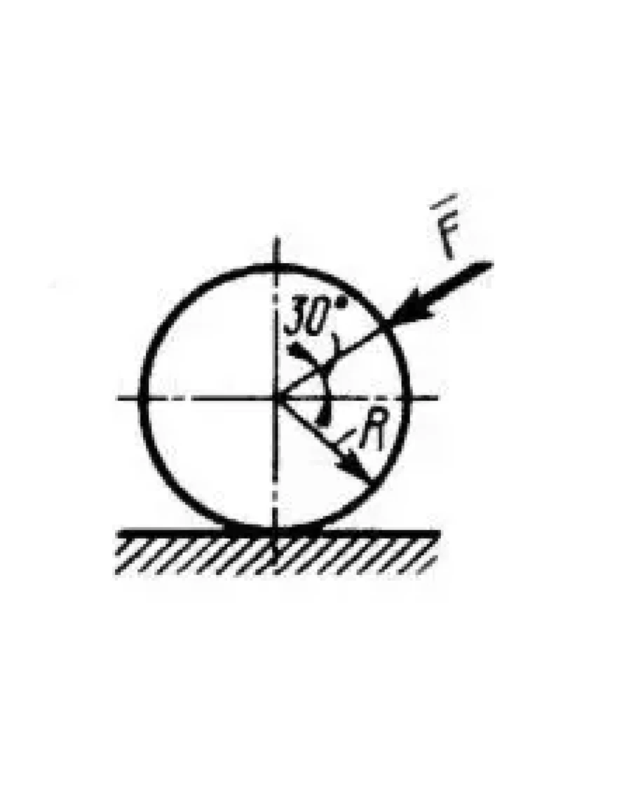 К однородному катку весом 700Н приложена сила F. Определить наименьший модуль этой силы, для того чтобы каток начал катиться со скольжением, если радиус R = 1 м, коэффициенты трения скольжения и качения соответственно равны: f = 0,2, ? = 0,008 м. (Ответ 183)