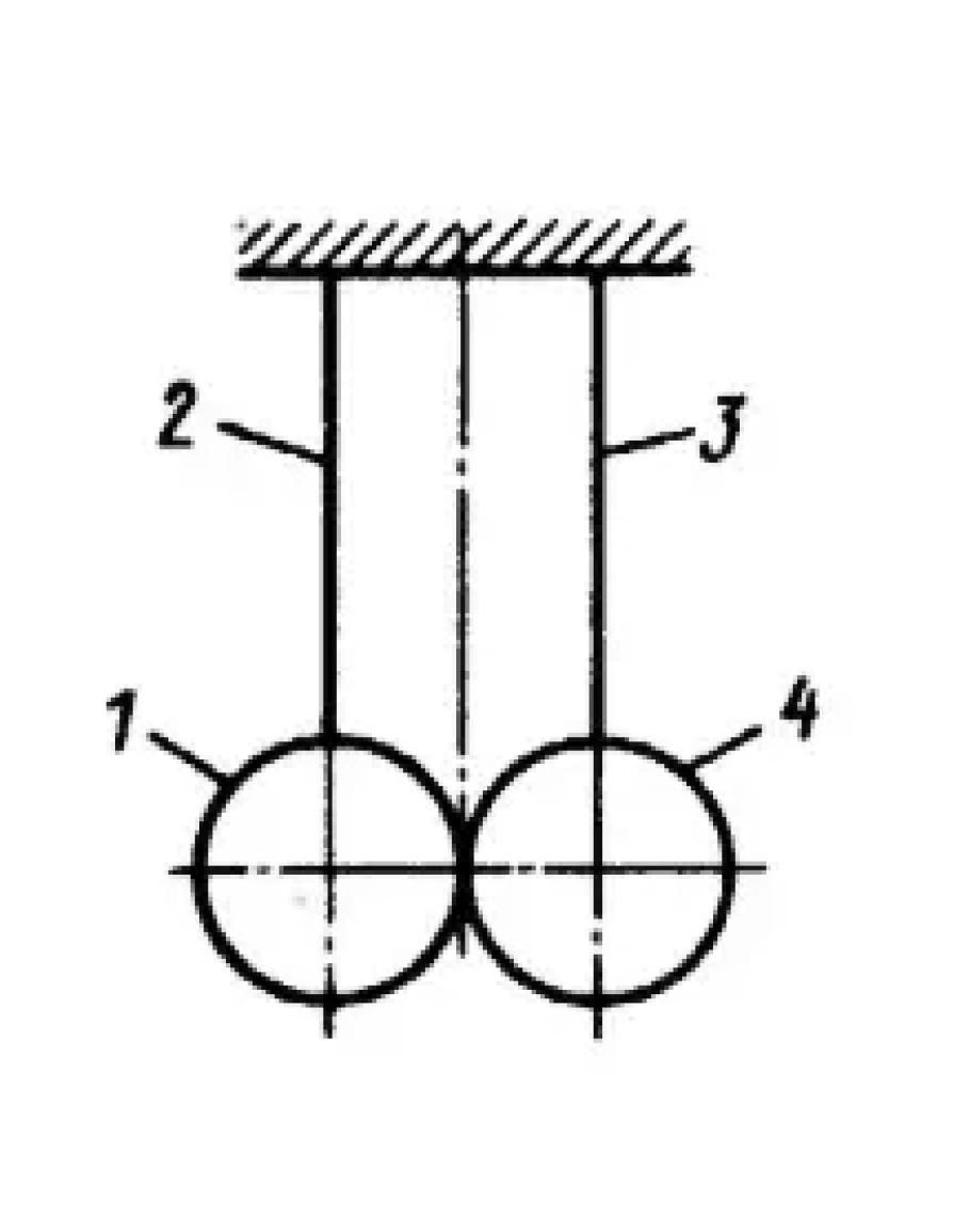 шару 4, подвешенному на нити 3. Определить скорость после удара шара 4, если коэффициент