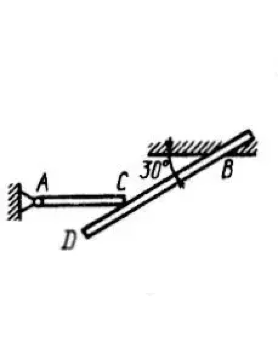 Однородный горизонтальный стержень АС, вес которого равен 180Н, свободно опирается в точке С на балку BD. Определить реакцию балки BD на стержень АС (Ответ 104)