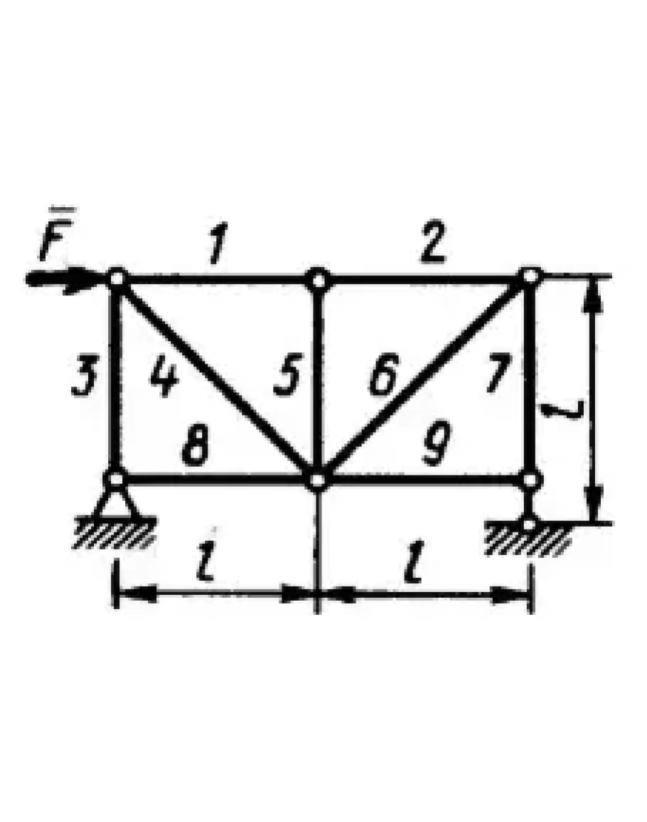 Определить усилие в стержне 2. Сила F = 180H (Ответ -90)