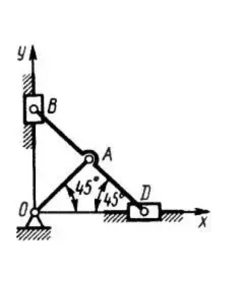 Определить в заданном положении координату ус центра тяжести эллипсографа, если веса однородного стержня ОА и однородной линейки BD соответственно равны 8 и 12 Н, ползунов В и D - 5 Н каждый. Длина ОА = 0,4 м. (Ответ 0,245)