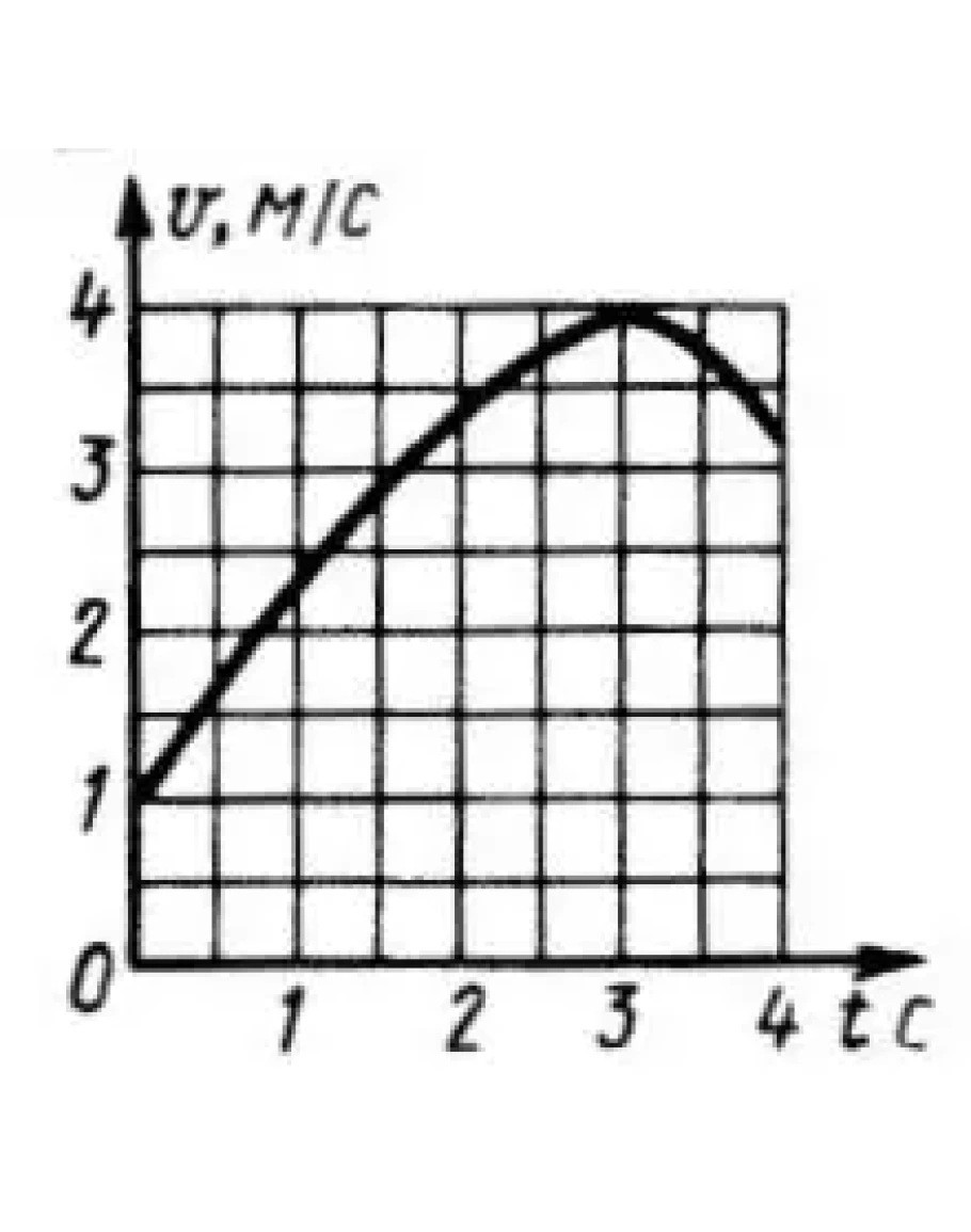 Дан график скорости v = v(t) движения точки по окружности радиуса 6 м. Определить нормальное ускорение точки в момент времени t = 3 с. (Ответ 2,67)