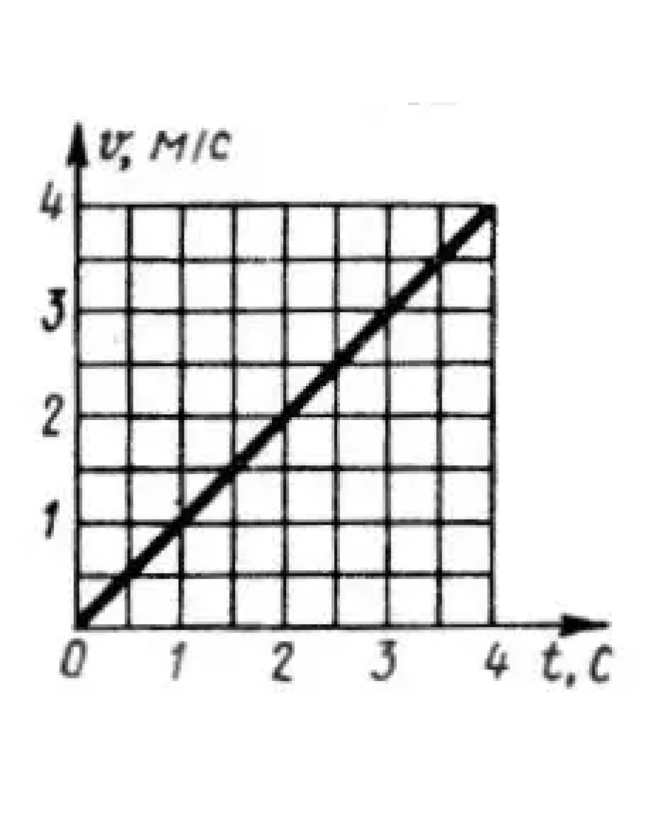 Дан график скорости v = v(t) движения точки по окружности радиуса 8 м. Определить полное ускорение в момент времени t = 4 с. (Ответ 2,24)