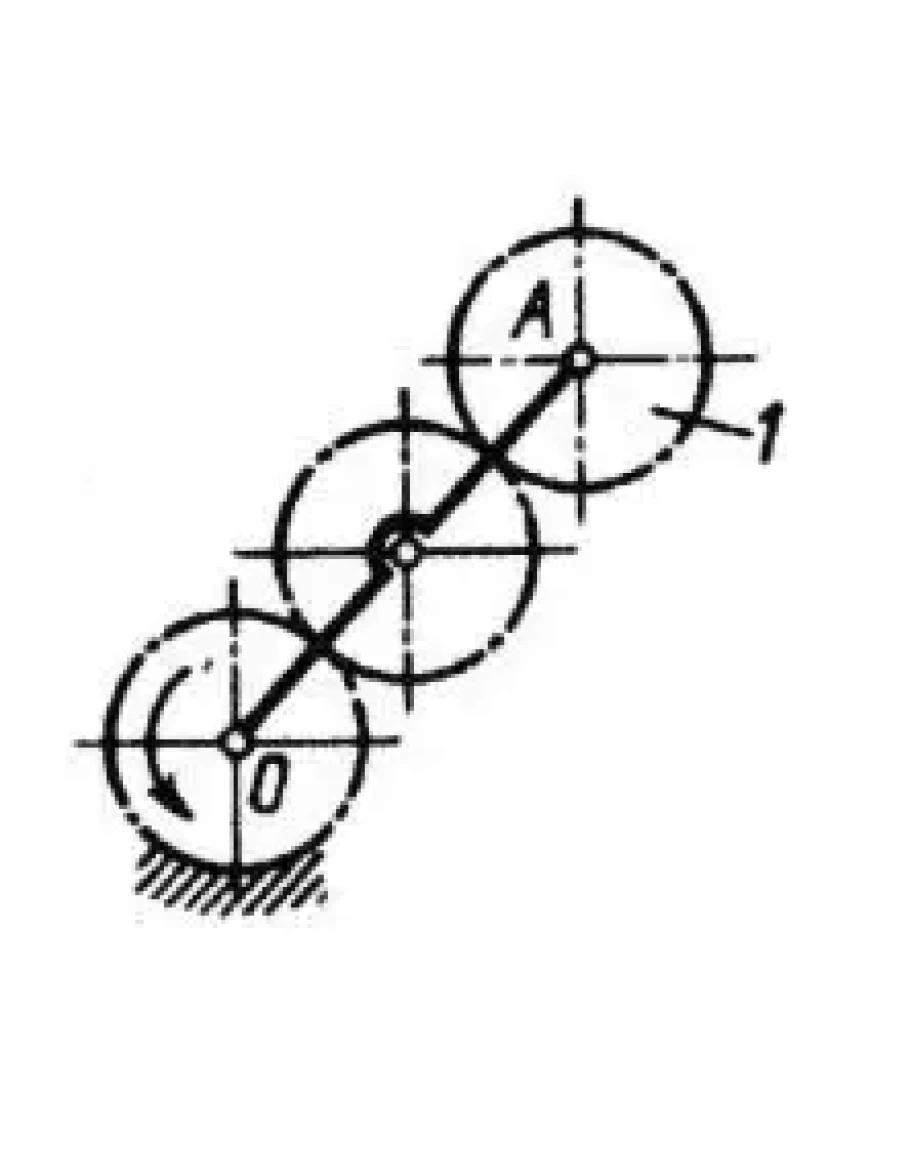 Кривошип ОА вращается по закону ? = 0,5t. Определить угловую скорость колеса 1 планетарного механизма, если длина звена ОА = 0,2 м и радиусы всех колес одинаковы. (Ответ 0)