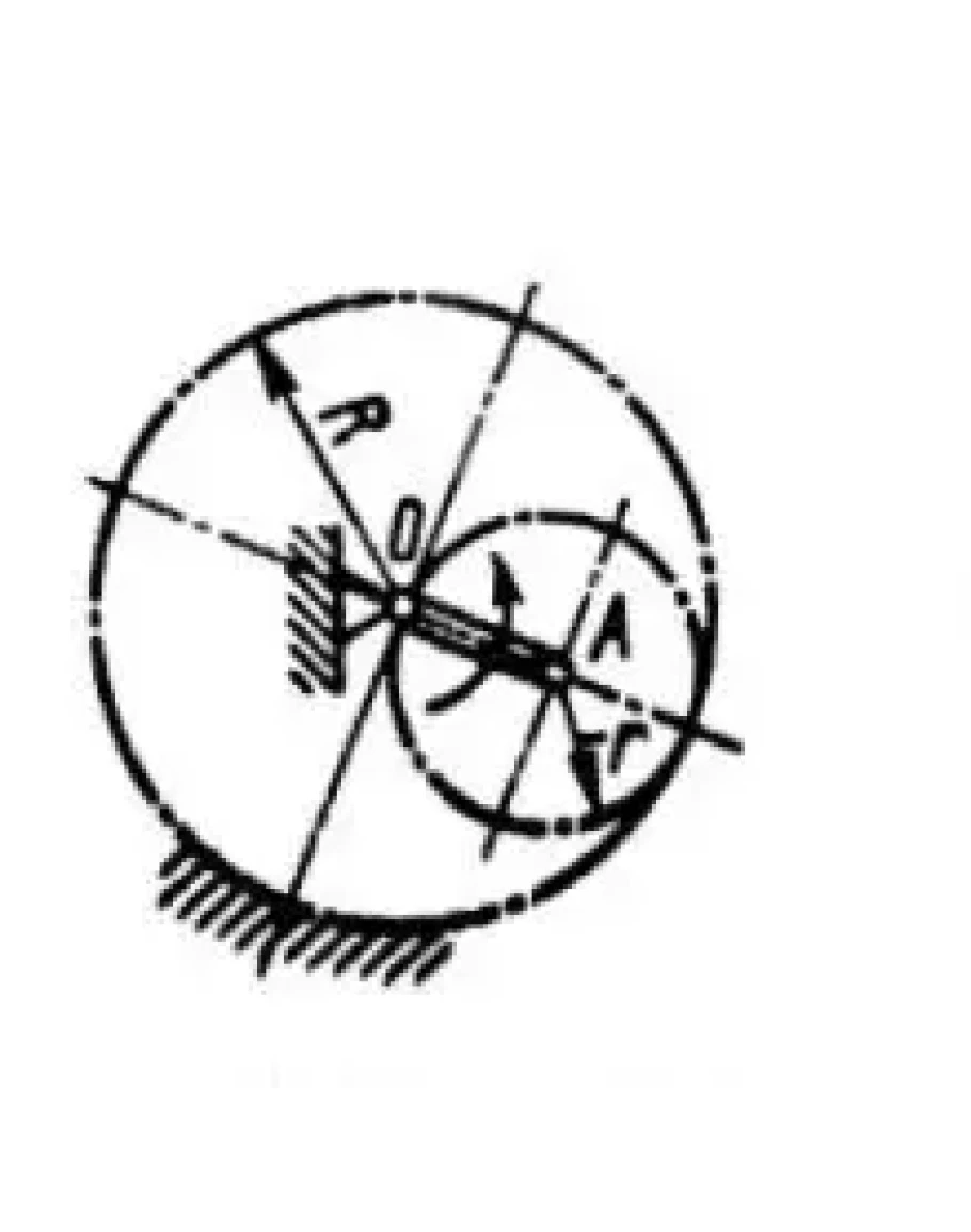 Кривошип ОА вращается согласно закону ? = 0,4t2. Определить угловое ускорение подвижной шестерни, если радиус R = 2t = 0,2 м. (Ответ 0,8)