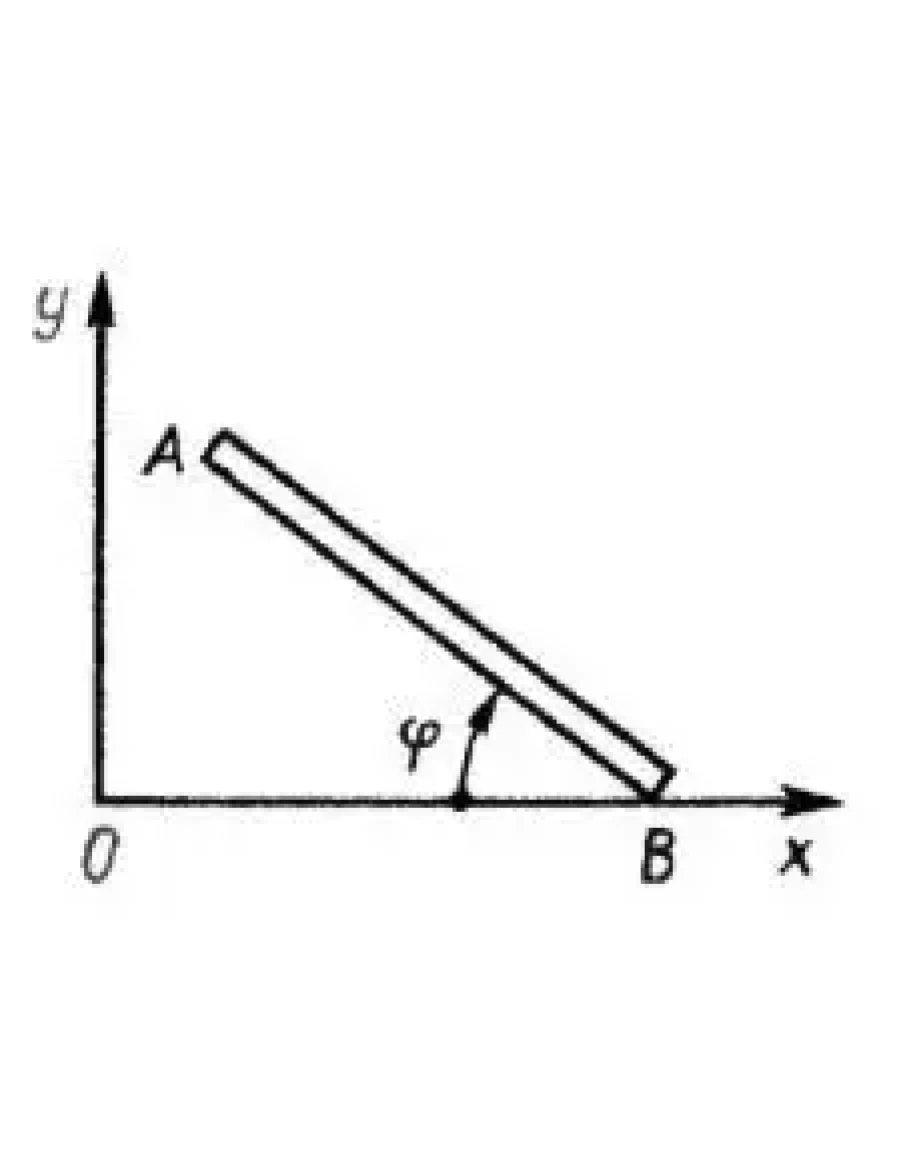 Стержень АВ длиной 2 м движется в плоскости Оху согласно уравнениям хВ = 4 cos 0,5 ?t, yB = 0. ? = 0,5 ?t. Определить в момент времени t1 = 0,5 с проекцию вектора скорости точки А на ось Ох. (Ответ -2,22)