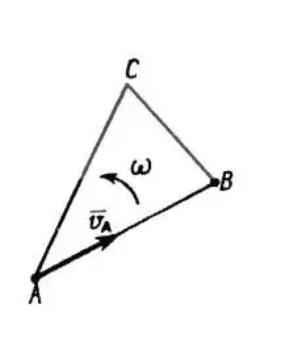 Скорость точки А плоской фигуры АВС vA = 2 м/с, угловая скорость фигуры ? = 2 рад/с, расстояние АВ = 1,5 м.