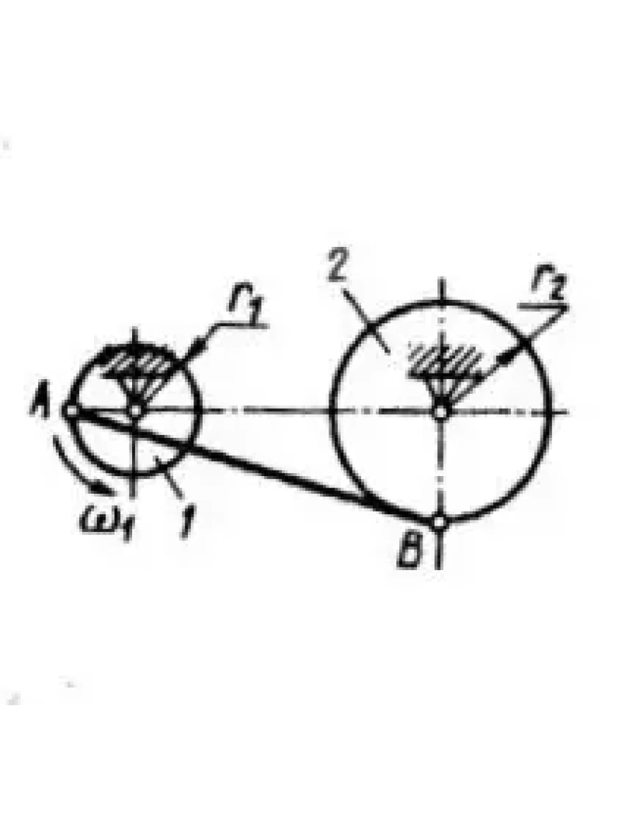 Шкив а радиуса r1 = 0,2 м и диск 2 радиуса r2 = 0,5 м шарнирно соединены штангой АВ.