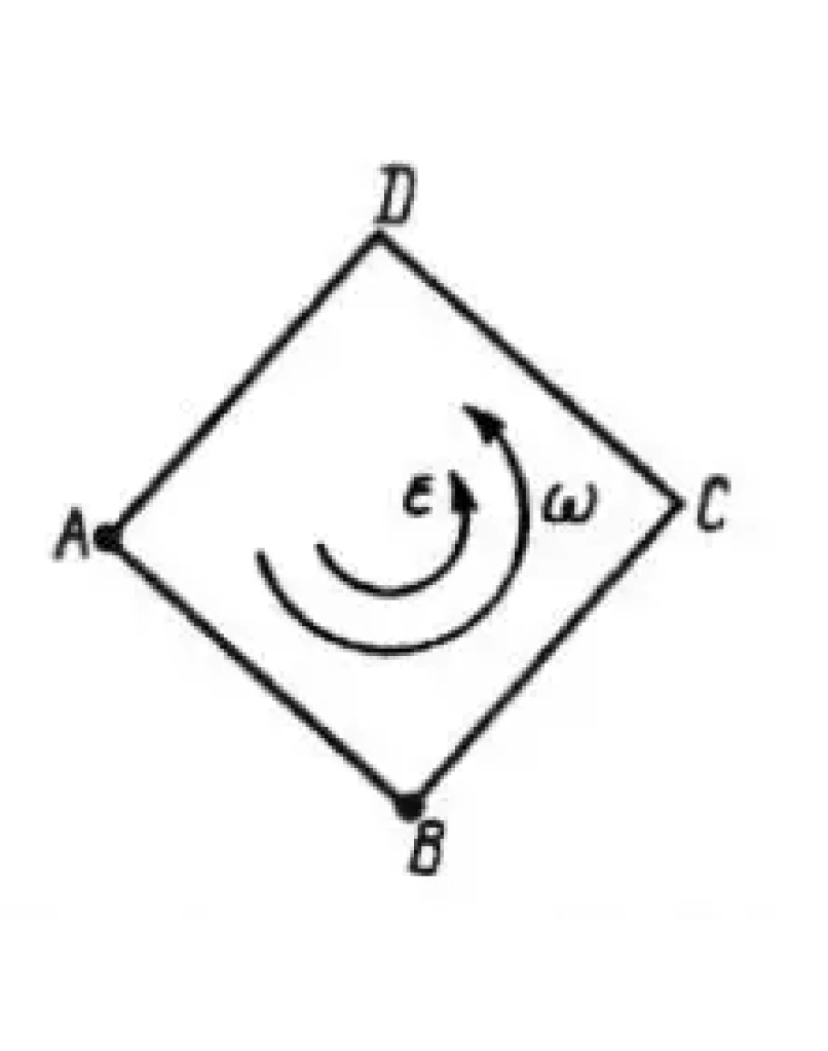 Квадрат ABCD со стороной, равной 0,1 м, совершает плоскопараллельное движение и в данный момент времени имеет мгновенный центр ускорения в точке А, угловую скорость ? = 2 рад/с и угловое ускорение ? = 3 рад/с2. Определить модуль ускорения точки В. (Ответ 0,5)