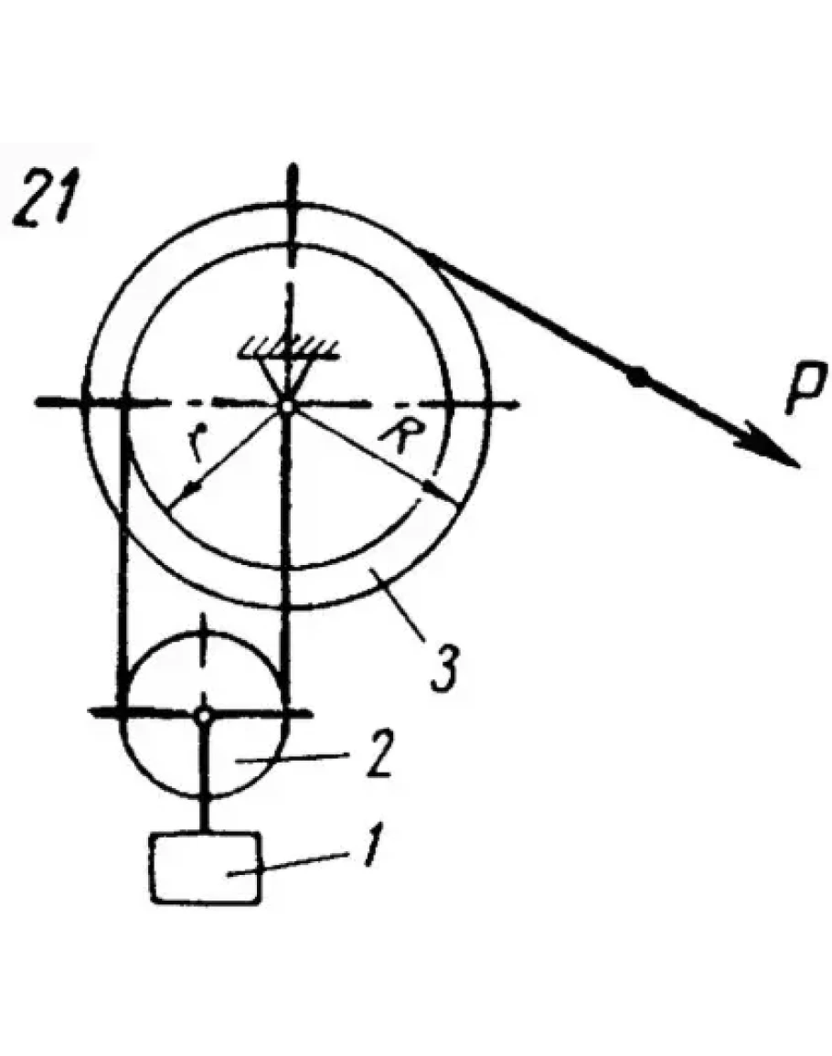 Для заданной механической системы определить ускорения грузов и натяжения в ветвях нитей, к которым прикреплены грузы. Массами нитей пренебречь. Трение качения и силы сопротивления в подшипниках не учитывать. Система движется из состояния покоя.