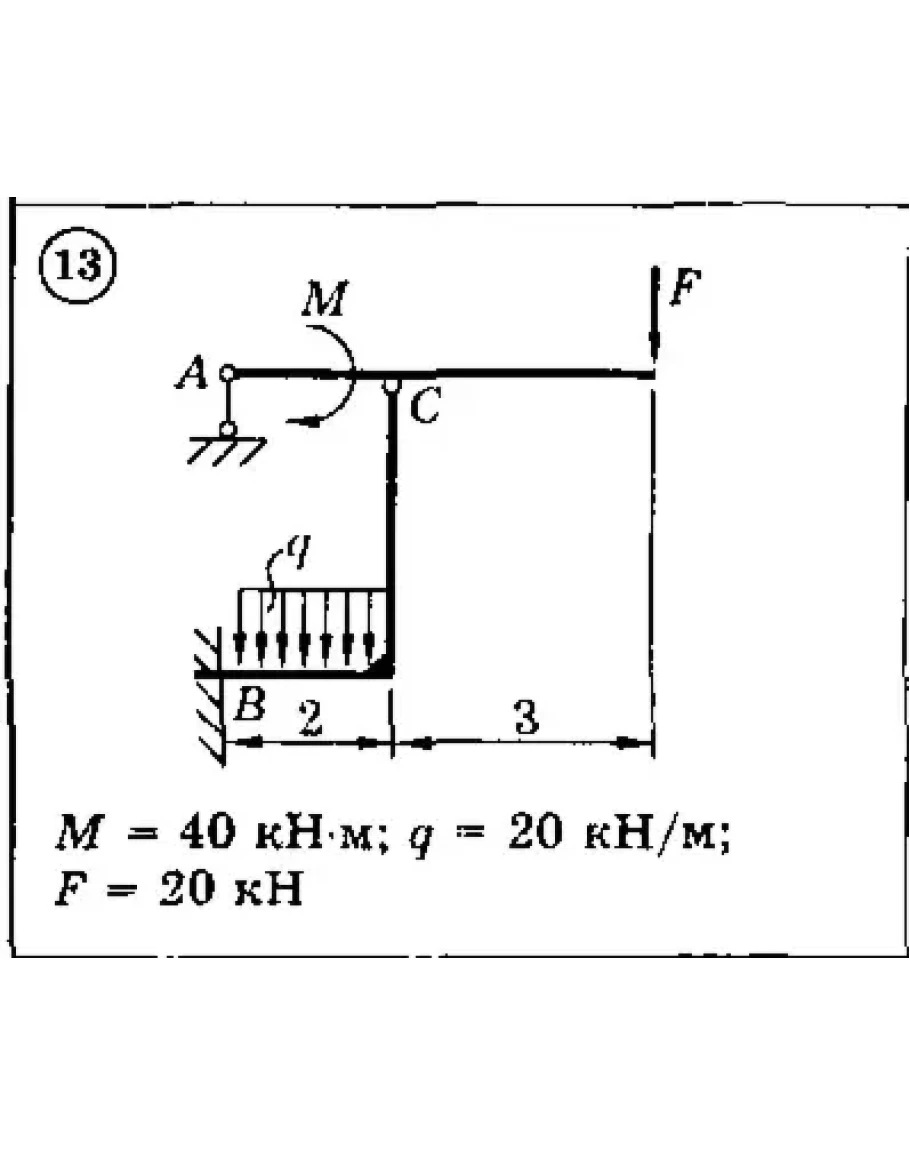 ЗАДАНИЕ С3 (стр. 23 в Диевском 2009 года): Для представленных на схемах 1-30 составных конструкций найти реакции опор. Размеры указаны в метрах. Весом элементов конструкций пренебречь.