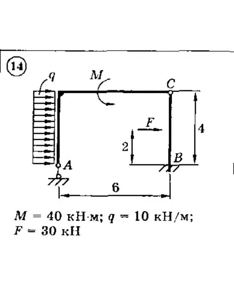 ЗАДАНИЕ С3 (стр. 23 в Диевском 2009 года): Для представленных на схемах 1-30 составных конструкций найти реакции опор. Размеры указаны в метрах. Весом элементов конструкций пренебречь.