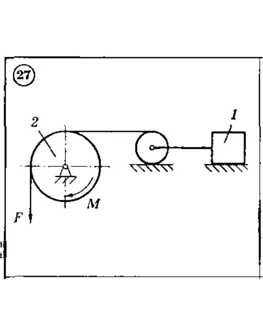 Д4 ЗАДАНИЕ 2: Для представленных на рисунках схем 1-30, используя принцип Лагранжа, определить величину силы F (при наличии трения — максимальное значение этой величины), при которой механическая система будет находиться в равновесии. Исходные данные: вес груза G1 = 20 кН, вращающий момент М = 1 кН*м, радиус барабана R2 = 0,4 м (у двойного барабана имеется также r2=0,2 м), угол а = 30° и коэффициент трения скольжения f = 0,5. Ненумерованные блоки и катки считать невесомыми. Трением на осях барабана и блоков пренебречь.