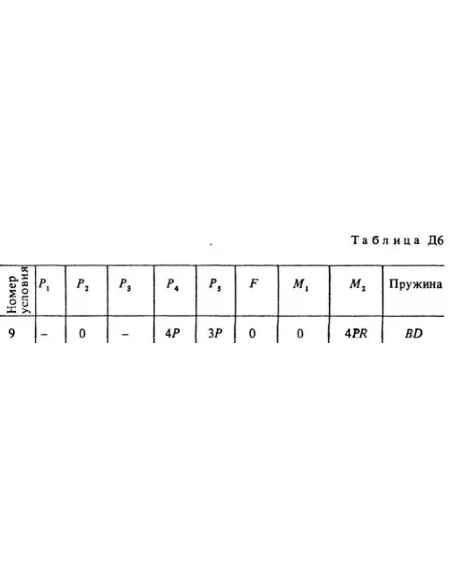 На систему кроме сил тяжести действуют сила F. приложенная к телу 4 или 5 (если тело 5 в систему не входит, сила приложена в точке В к тележке), и пары сил с моментами М1 и М2, приложенные к блокам (при М < 0 направление момента противоположно показанному на рисунке). На участке нити, указанном в таблице в столбце Пружина;, включена пружина с коэффициентом жесткости с (например, если в столбце стоит АВ, то участок АВ является пружиной, если AD то AD пружина, и т.д.); в начальный момент времени пружина не деформирована. Составить для системы уравнения Лагранжа и определить из них частоту и период колебаний, совершаемых телами системы при ее движении.