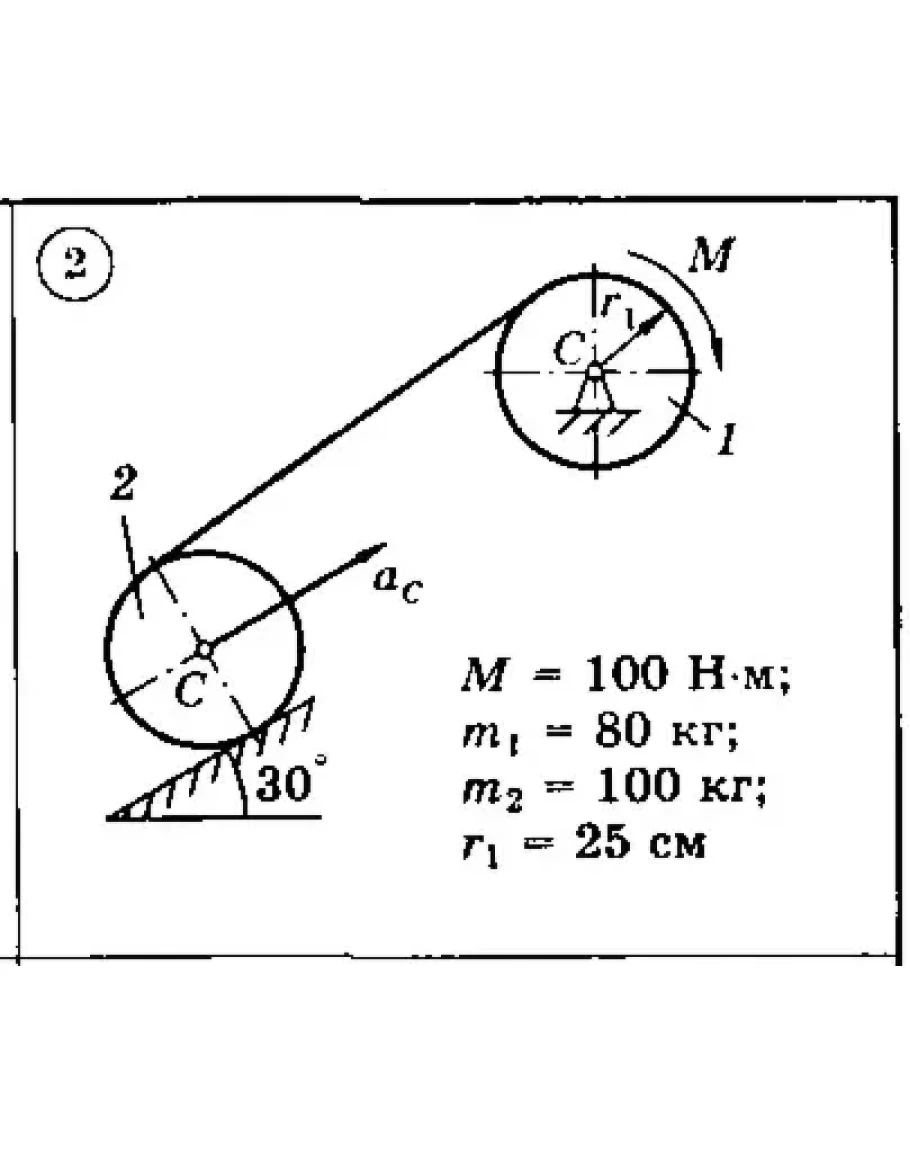 Для приведенных на схемах 1-30 механических систем, используя уравнения Лагранжа второго рода, определить указанное на схеме угловое ускорение или линейное ускорение. Нити невесомы и нерастяжимы. Принятые обозначения: т — массы тел, R и r — радиусы, р — радиус инерции (если он не указан, тело считать однородным цилиндром); при наличии трения указываются: f — коэффициент трения скольжения, fк — коэффициент трения качения.