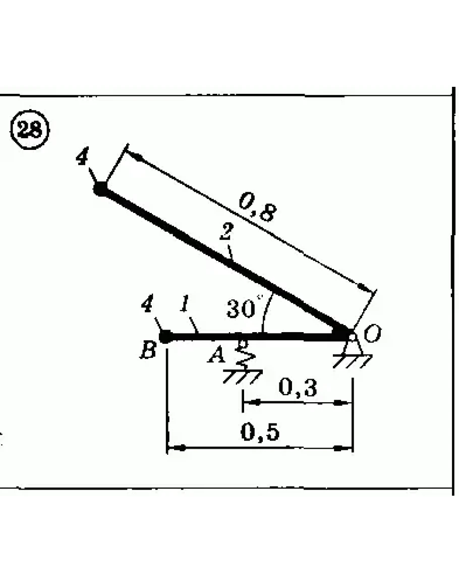 Д7 ЗАДАНИЕ 2 - ВЫНУЖДЕННЫЕ КОЛЕБАНИЯ: Механические системы на схемах 1-30 снабжаются невесомым вязким демпфером, который устанавливается в точке В параллельно оси упругого элемента, и создает силу сопротивления, пропорциональную скорости точки В: R = -bvB, где b = 20 Н*с/м — коэффициент сопротивления.