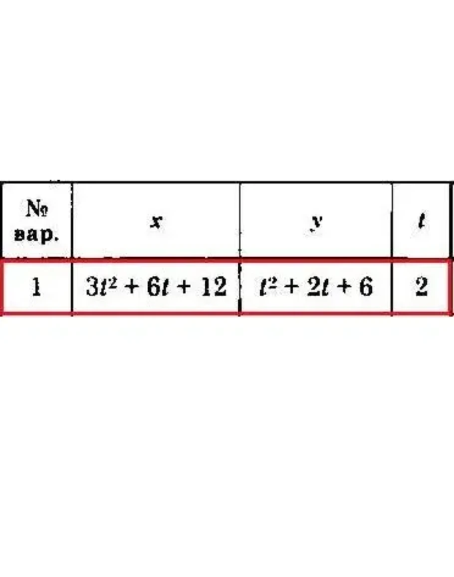 В соответствии с заданными уравнениями движения (варианты 1 - 30) определить траекторию движения точки. Для заданного момента времени t найти положение точки на траектории, ее скорость и ускорение (показать их на рисунке), а также радиус кривизны траектории в соответствующей точке. Данные, необходимые для вычисления, представлены ниже. Координаты х и у даны в метрах, время в секундах.
