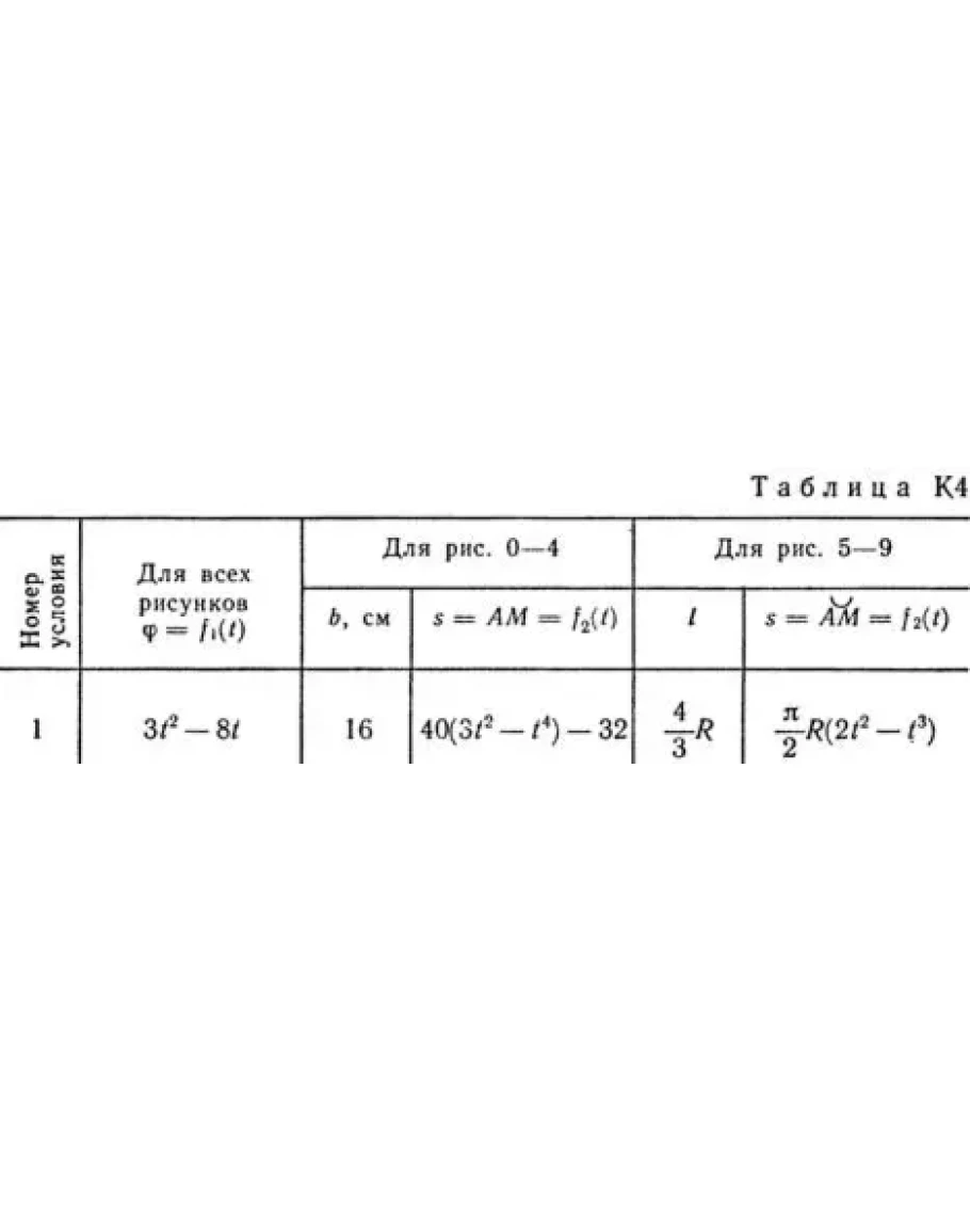 Решение задачи К4 Вариант 01 из решебника по теоретической механике к задачнику Тарг С.М. 1982 года.
