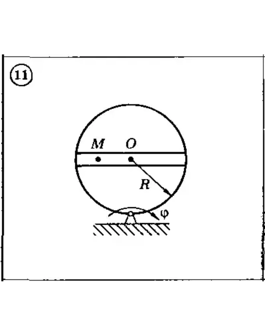 В приведенных ниже схемах 1-30 рассматривается движение точки М в желобе вращающегося тела. По заданным в таблице уравнениям относительного движения OM(t), переносного движения Фи(t) и геометрическим размерам определить абсолютную скорость и абсолютное ускорение точки в указанный момент времени.