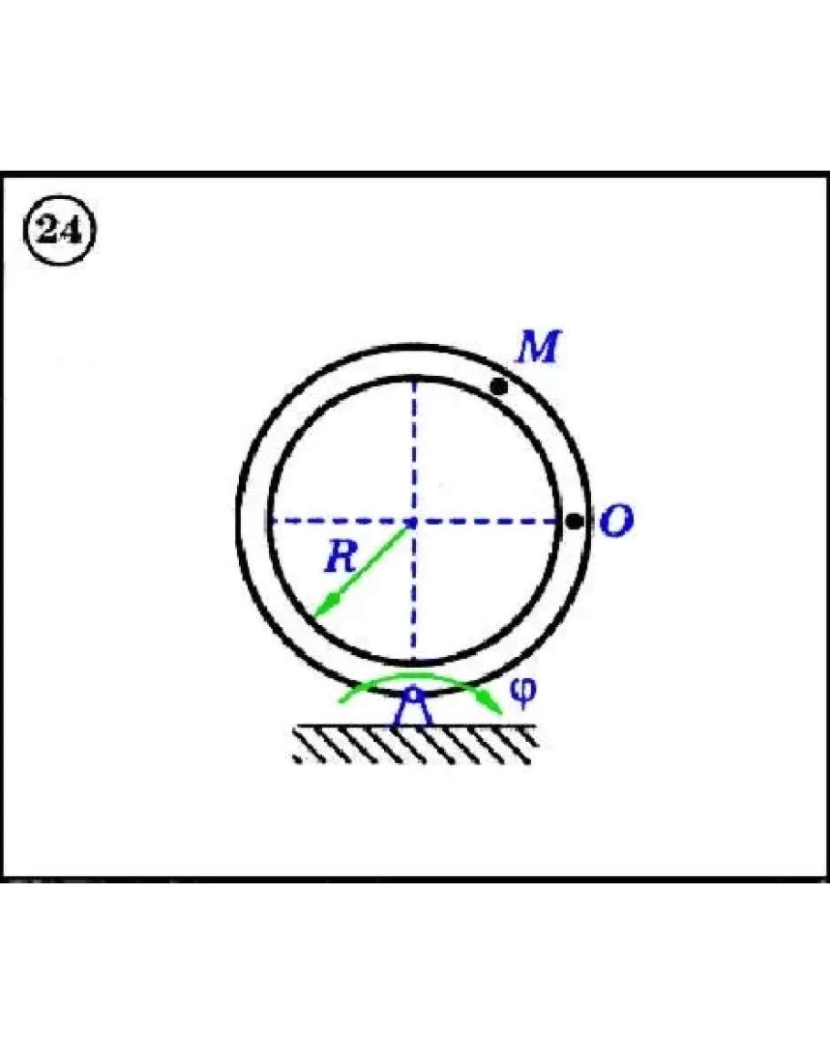 В приведенной ниже схеме рассматривается движение точки М в желобе вращающегося тела. По заданному в таблице уравнениию относительного движения ОМ(t), переносного движения φ(t) и геометрическим размерам определить абсолютную скорость и абсолютное ускорение точки в указанный момент времени.