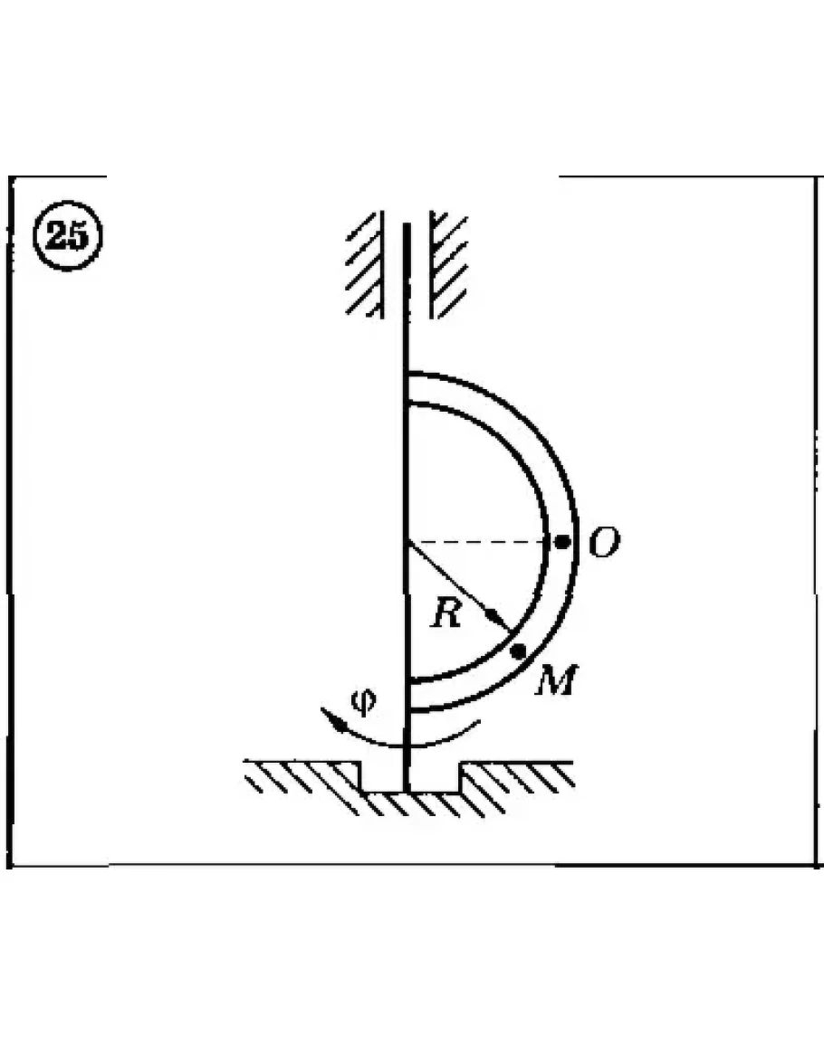 В приведенных ниже схемах 1-30 рассматривается движение точки М в желобе вращающегося тела. По заданным в таблице уравнениям относительного движения OM(t), переносного движения Фи(t) и геометрическим размерам определить абсолютную скорость и абсолютное ускорение точки в указанный момент времени.