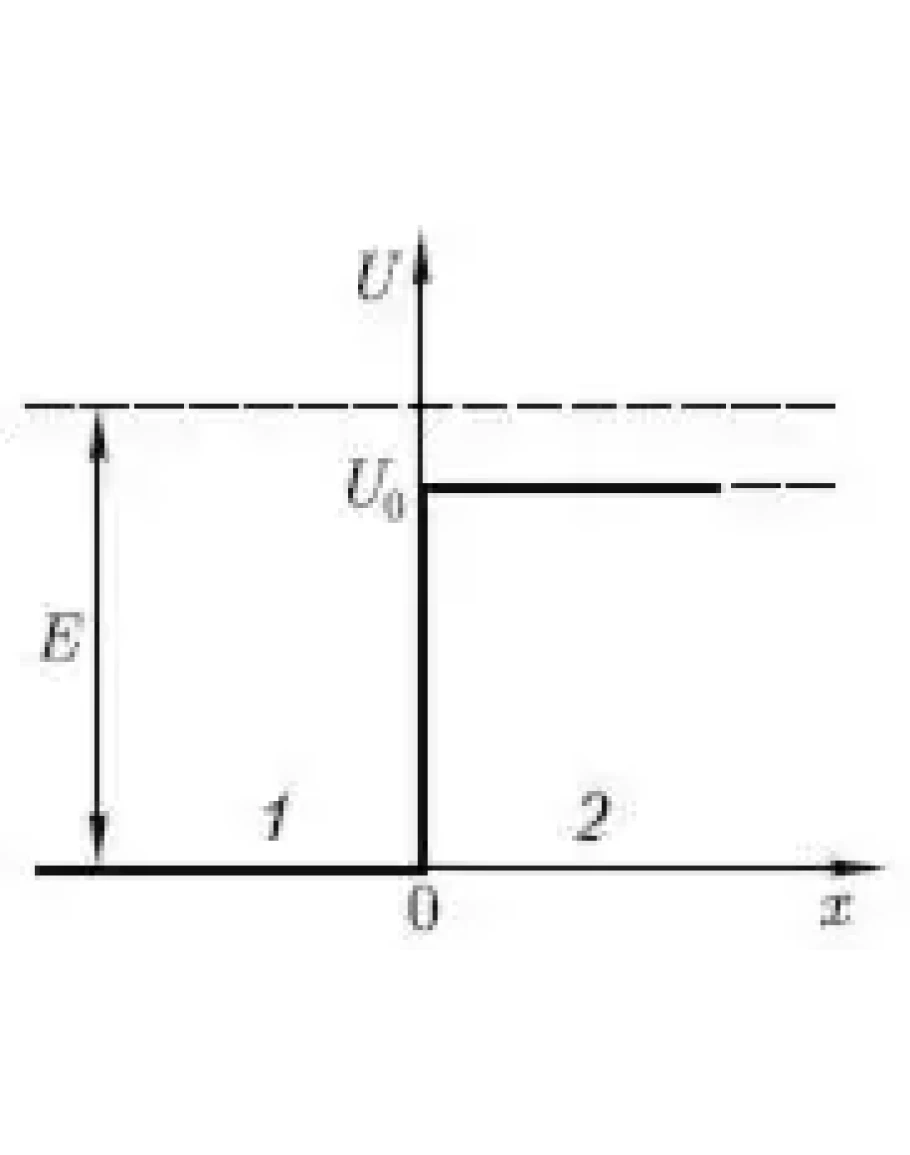 28. Частица массой m движется в положительном направлении оси x и встречает на своем пути бесконечно протяженный прямоугольный потенциальный порог высотой U0. Энергия частицы Е < U0. Запишите уравнение Шредингера для стационарных состояний частицы, найдите его решения и определите коэффициент отражения, а также вероятность найти частицу на единице длины.