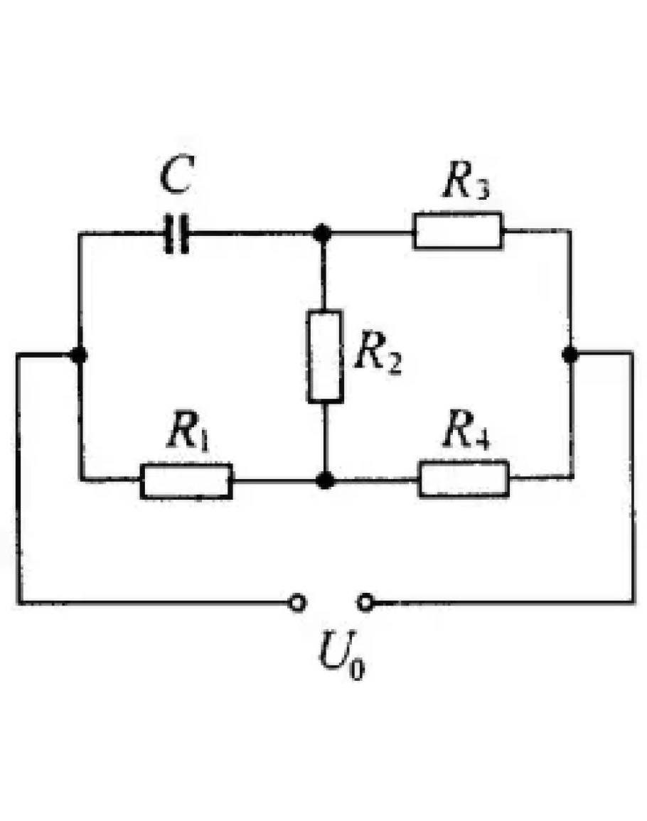 18. На рисунке R1 = R, R2 = 2R, R3 = 3R, R4 = 4R. Определите заряд на конденсаторе.