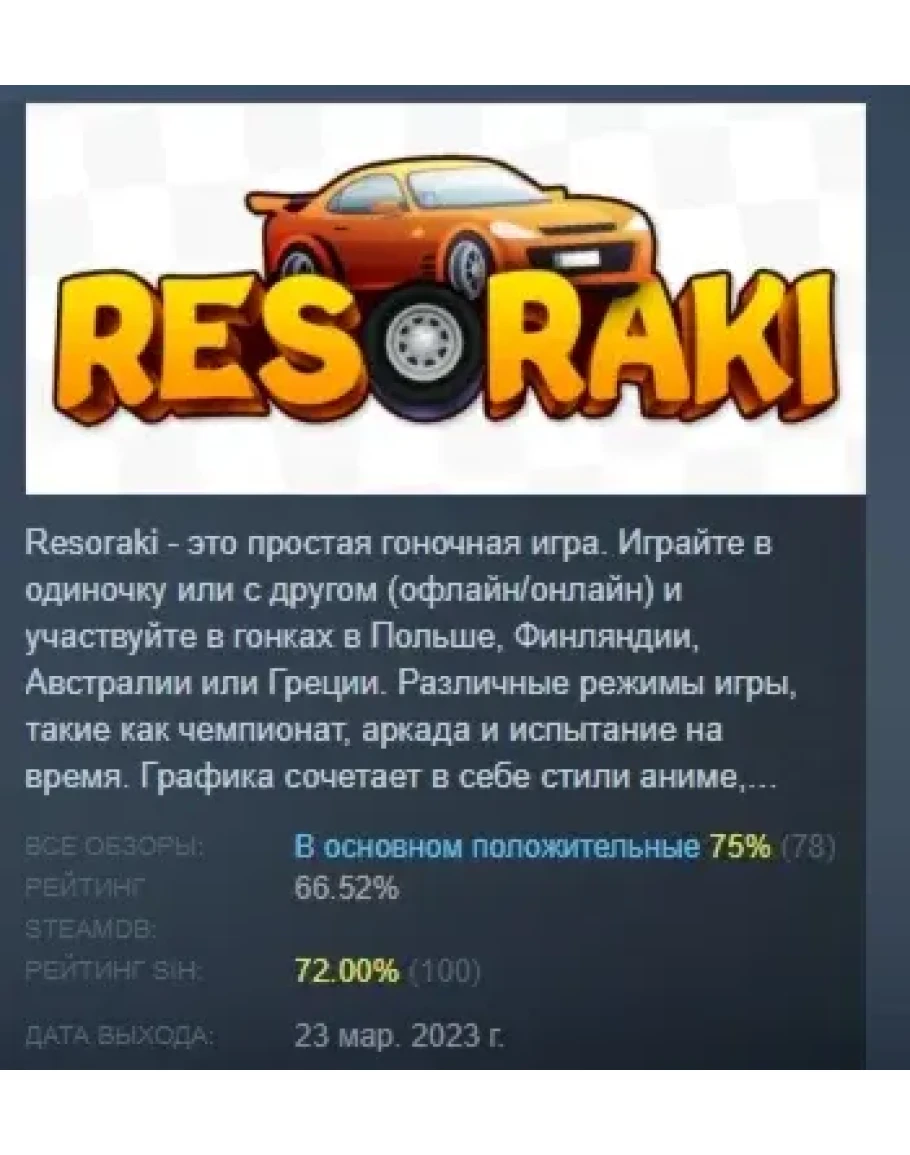 Resoraki: Гонки АВТОДОСТАВКА STEAM РОССИЯ