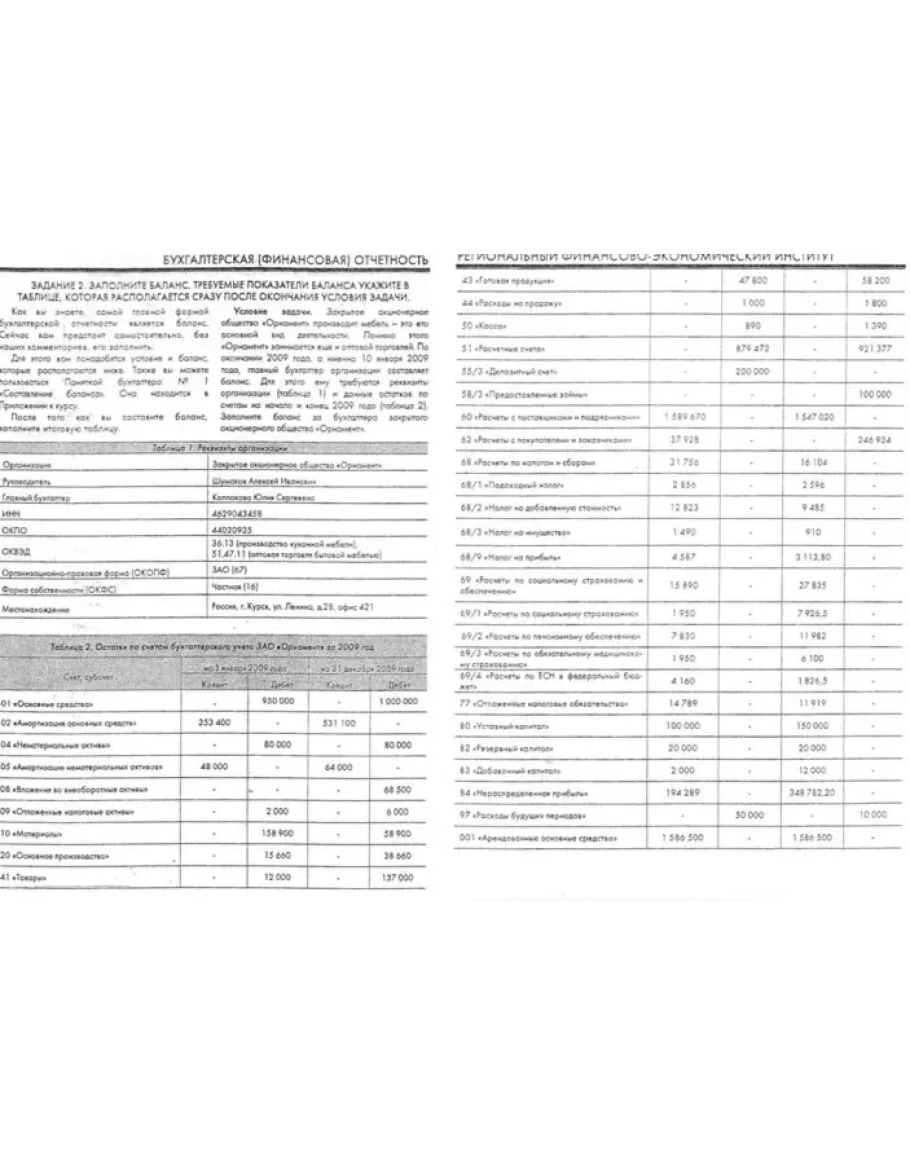 Итоговый экзамен "Бухгалтерская (финансовая) отчётность". Задание 2. Региональный финансово - экономический институт.