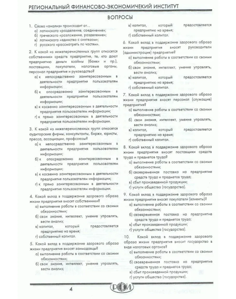 Итоговый экзамен "ТЕОРИЯ ЭКОНОМИЧЕСКОГО АНАЛИЗА". Региональный финансово - экономический институт.