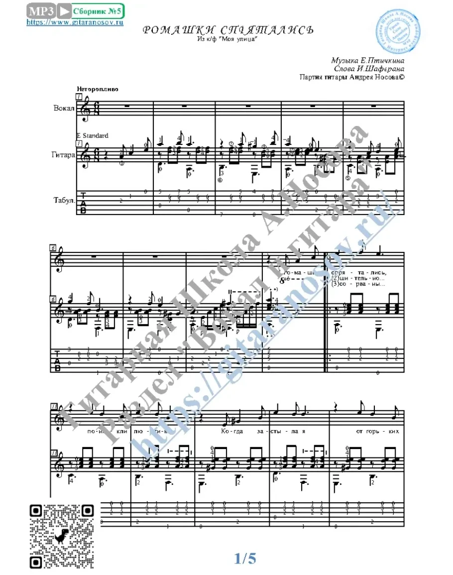 Товар состоит из двух частей (в одном PDF): 1 – Вокальная партия + гитарная партия с табулатурой; 2 – Вокальная партия + гитарная партия без табулатуры. Прилагается ссылка на прослушивание / скачивание mp3.