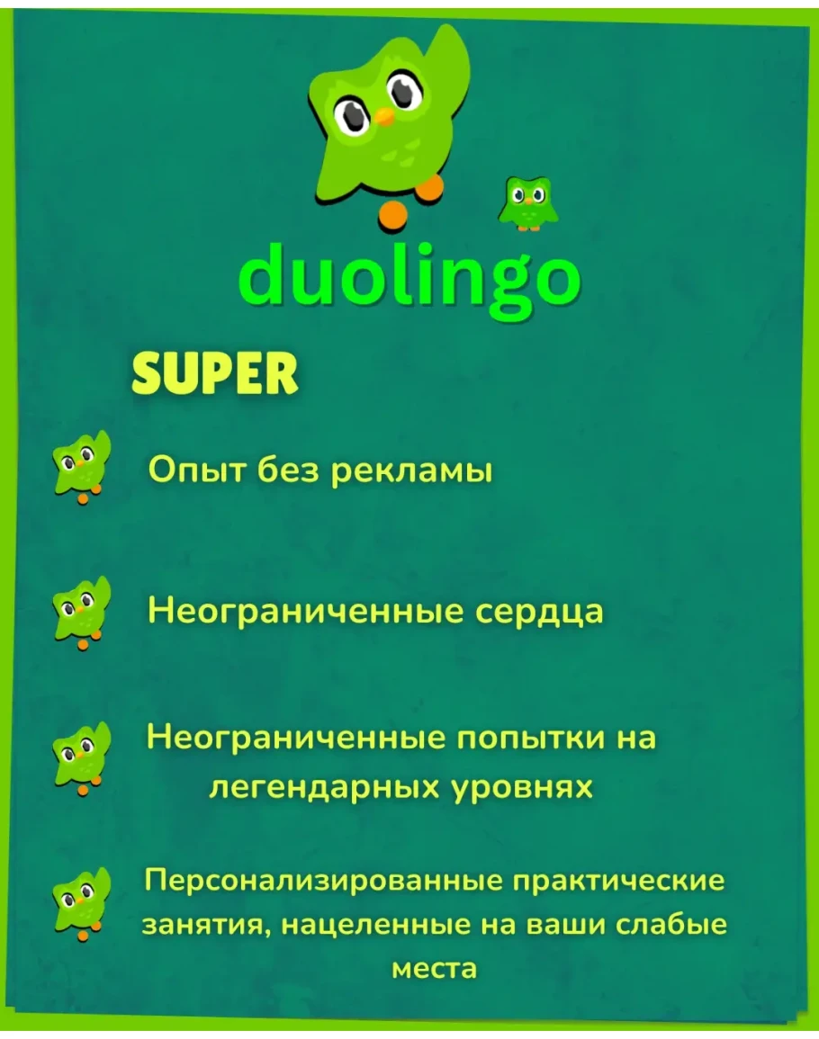 🚀 Учитесь быстрее, умнее и без рекламы с Duolingo Super — премиум-доступ через безопасное приглашение в семейный план. 🌍✨