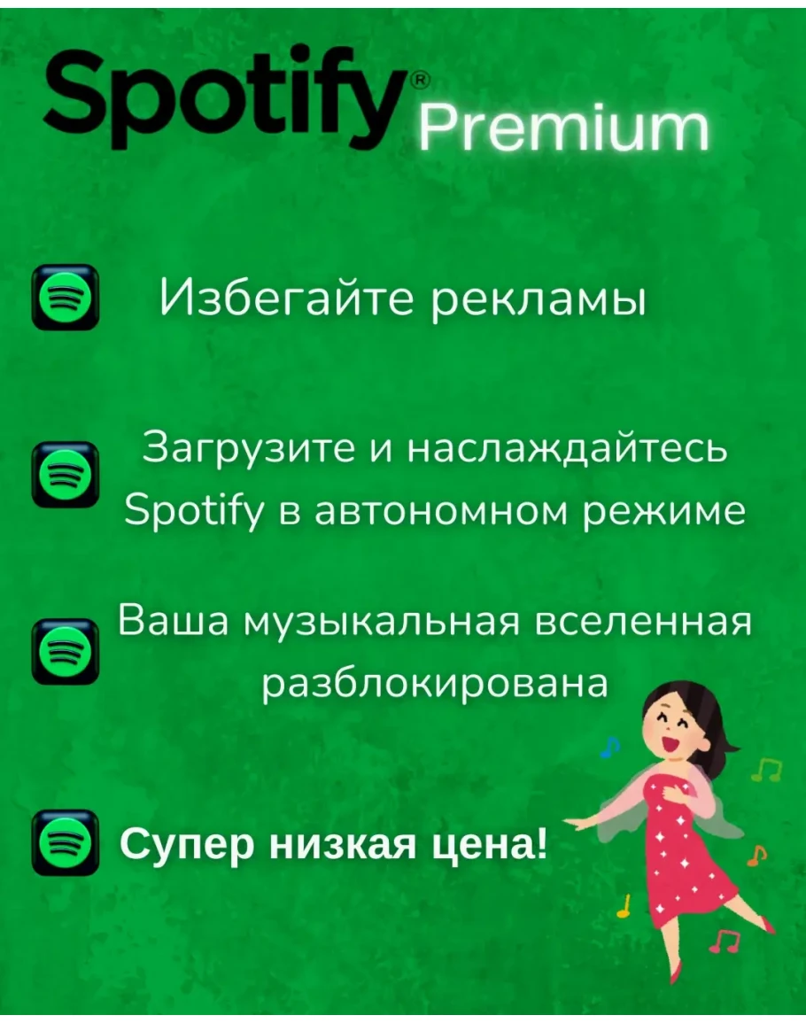 • Срок действия: Spotify Premium активен весь оплаченный период (3 месяца)