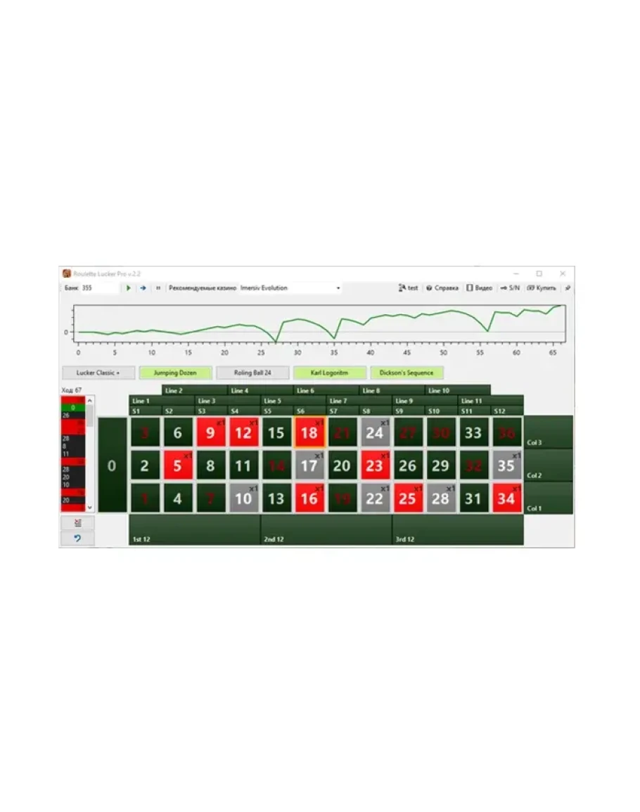 ПО работает с разными группами ставок от внешних ставок до стритов и сплитов. Вы вводите в программу выпавшие в игре числа, а сам софт выдает ставки, которые надо перенести в игровую сессию.
