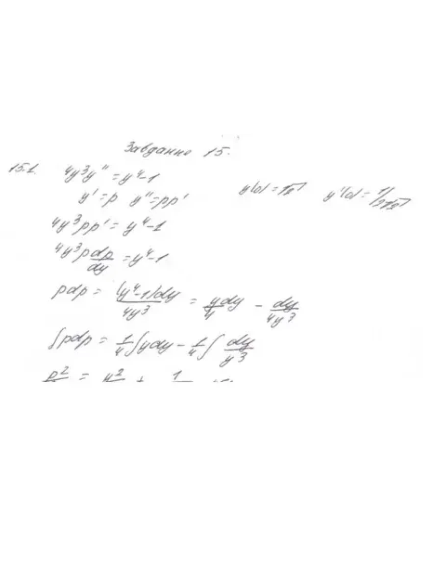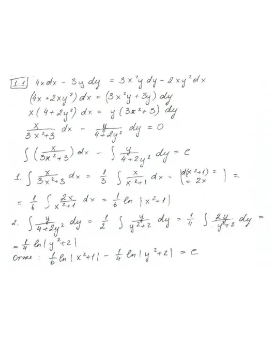 Розв'язана розрахункова робота з диференціальних рівнянь. НУЛП. В першому завданні потрібно знайти загальний інтеграл рівняння, в 15 - розв'язати задачу Коші. Варіант 1.